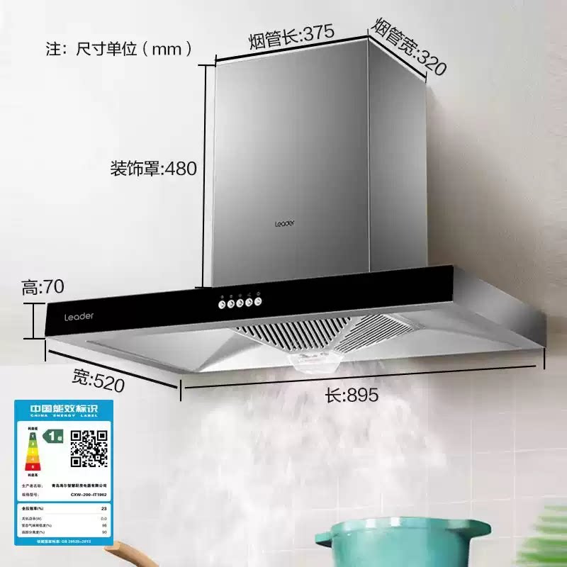 海尔智家Leader家用IT1902厨房欧式大吸力吸抽油烟机