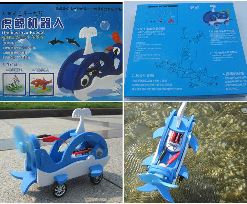 水陆两栖车轮船模型学生科技小制作虎鲸机器人DIY手工材料拼装玩