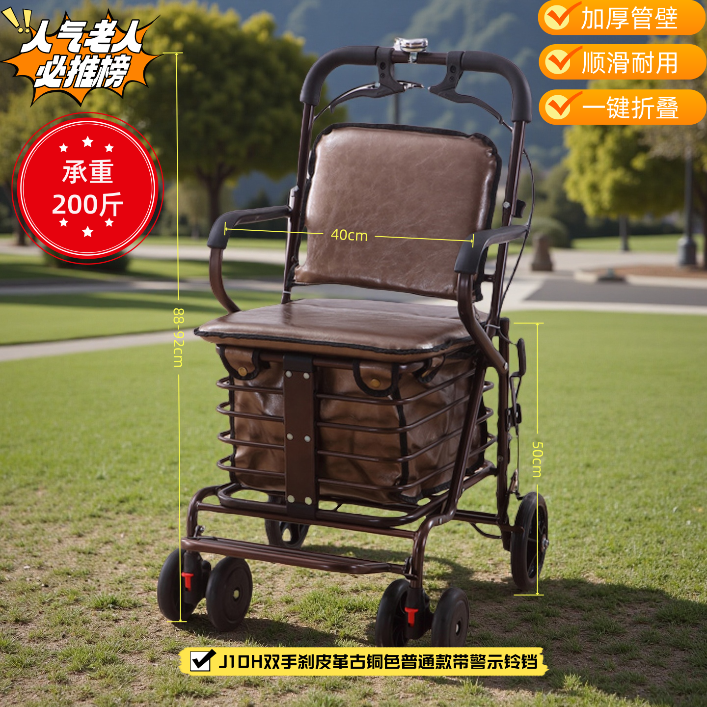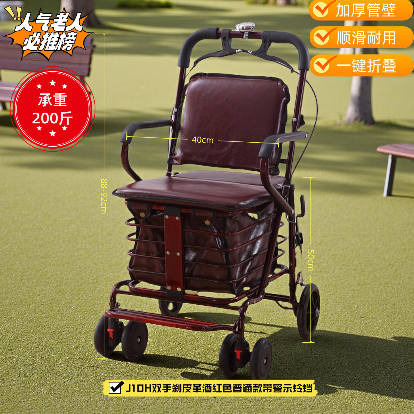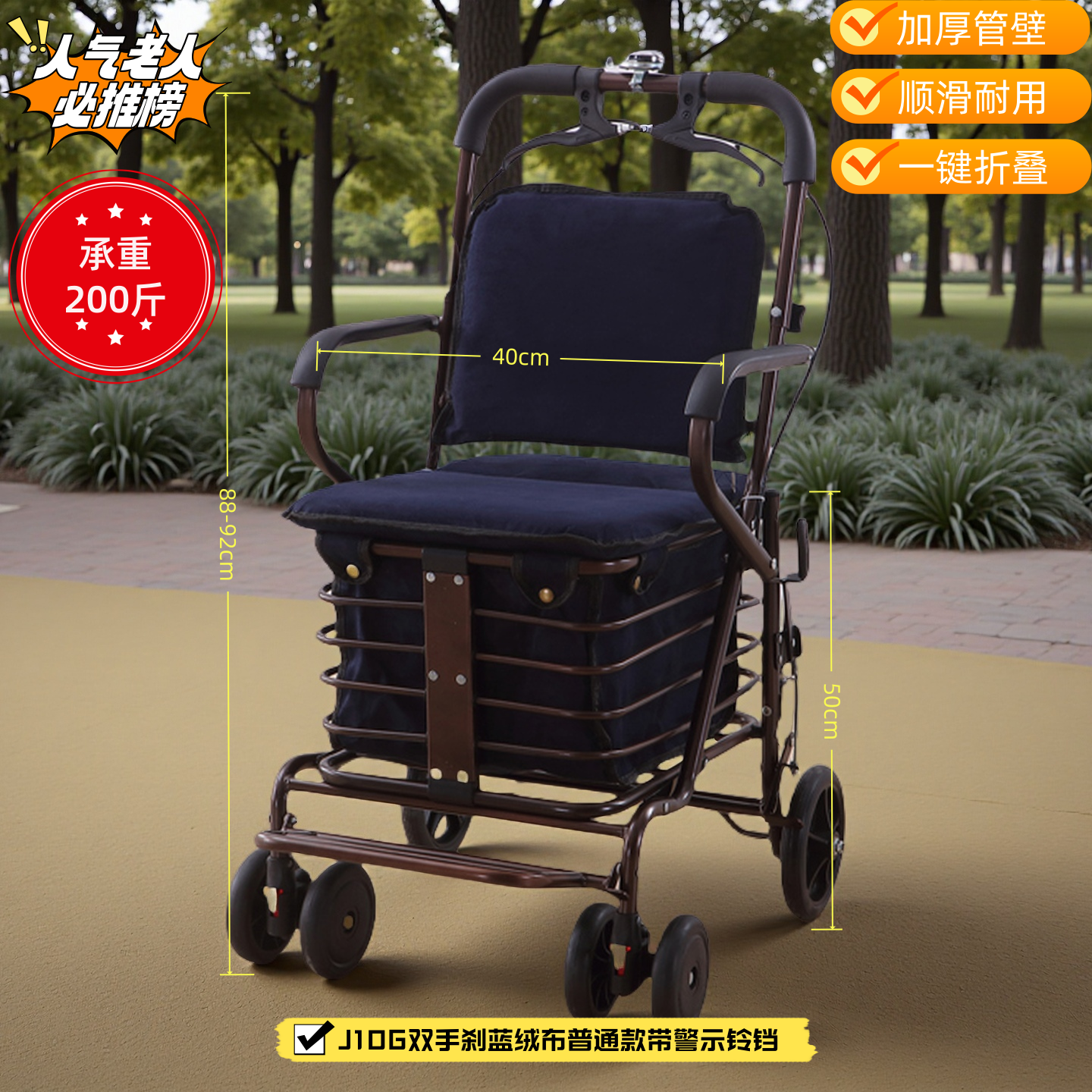 健喜便携买菜加宽老人代步购物车老人推车可坐老年手推车代步