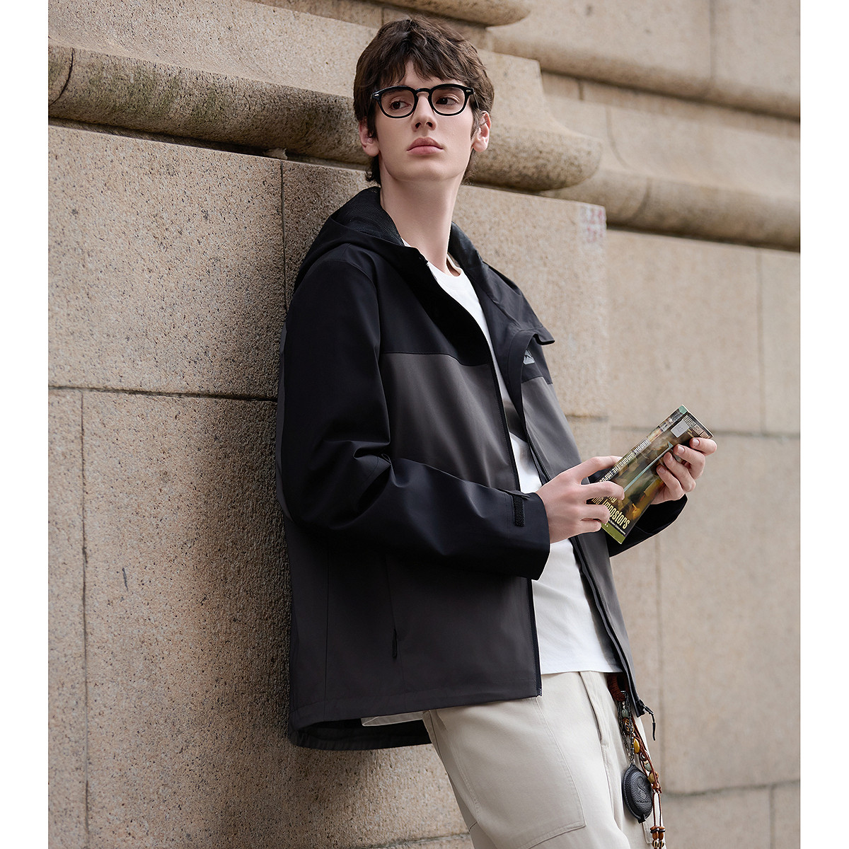 罗蒙夹克外套男士商务休闲秋季2025年新款可拆卸帽宽松连帽秋款