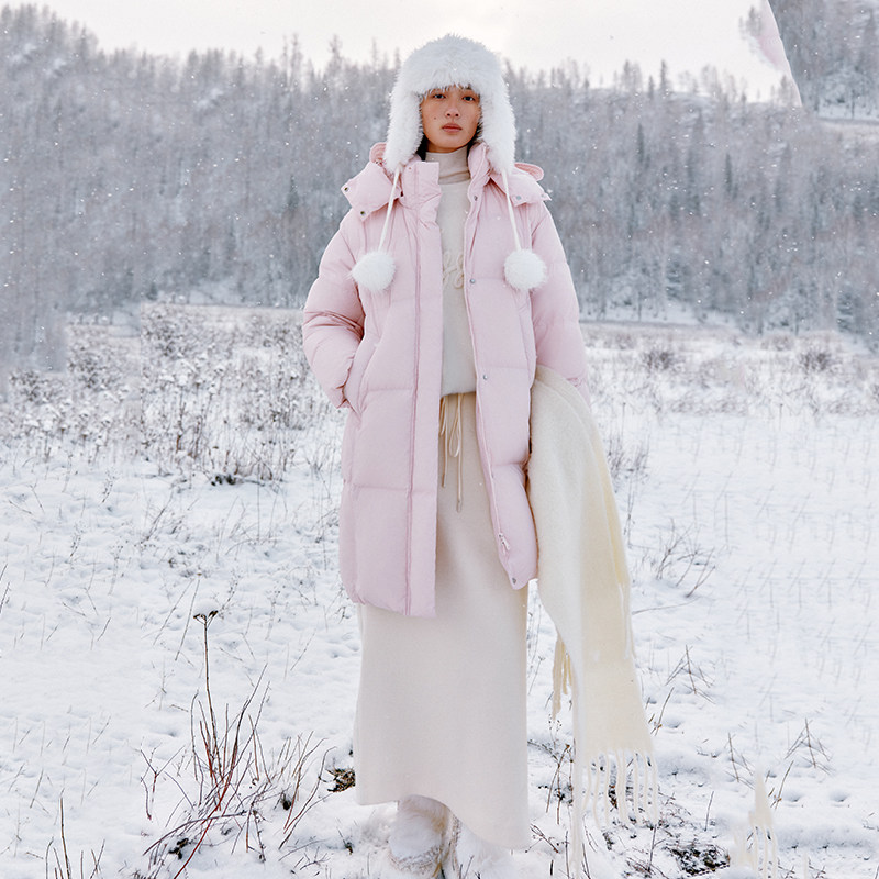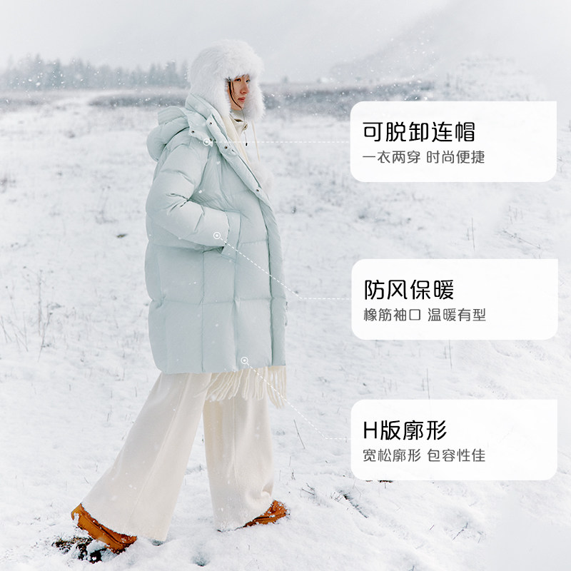 艾莱依秋冬新款羽绒服女中长款加厚保暖连帽简约气质保暖时尚外套