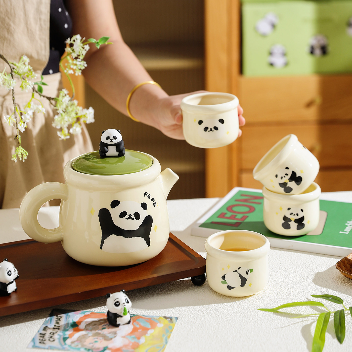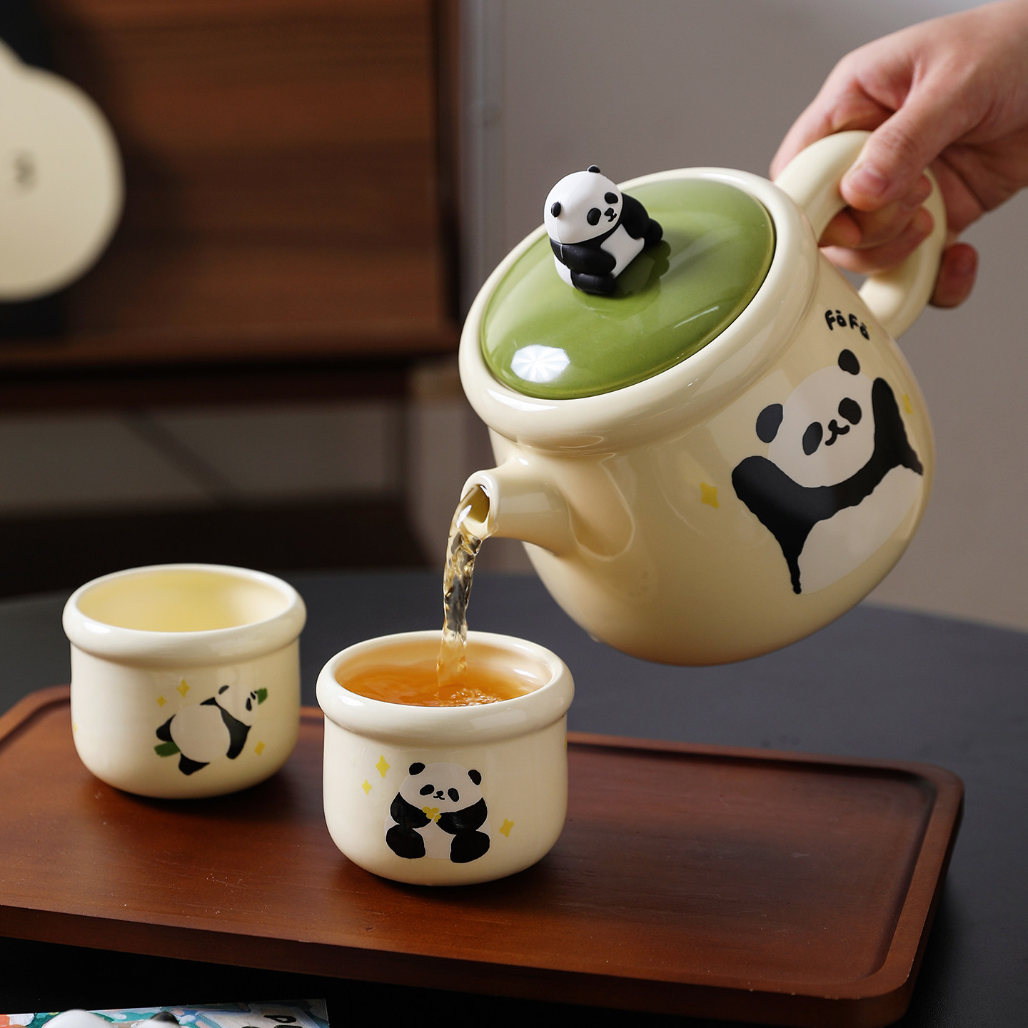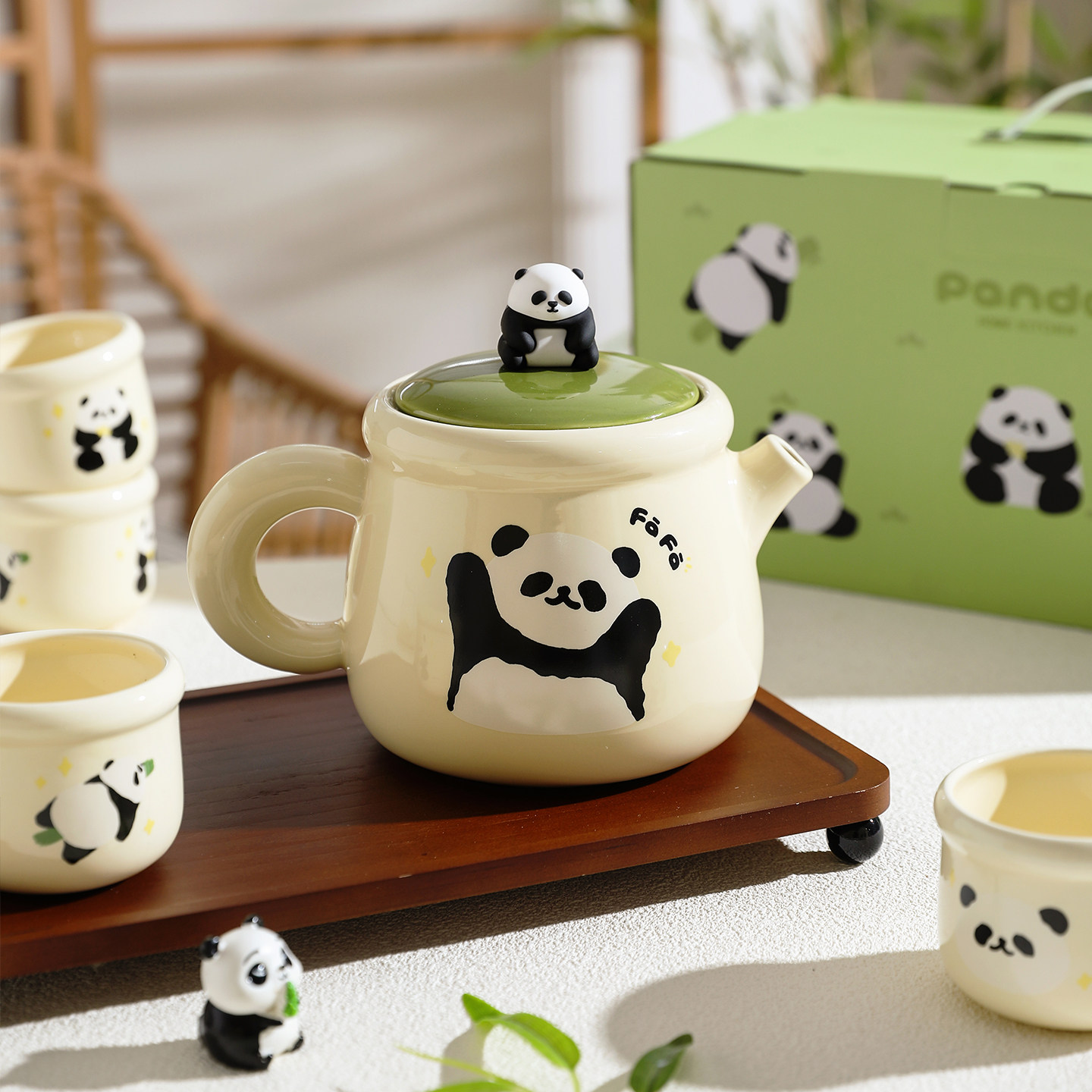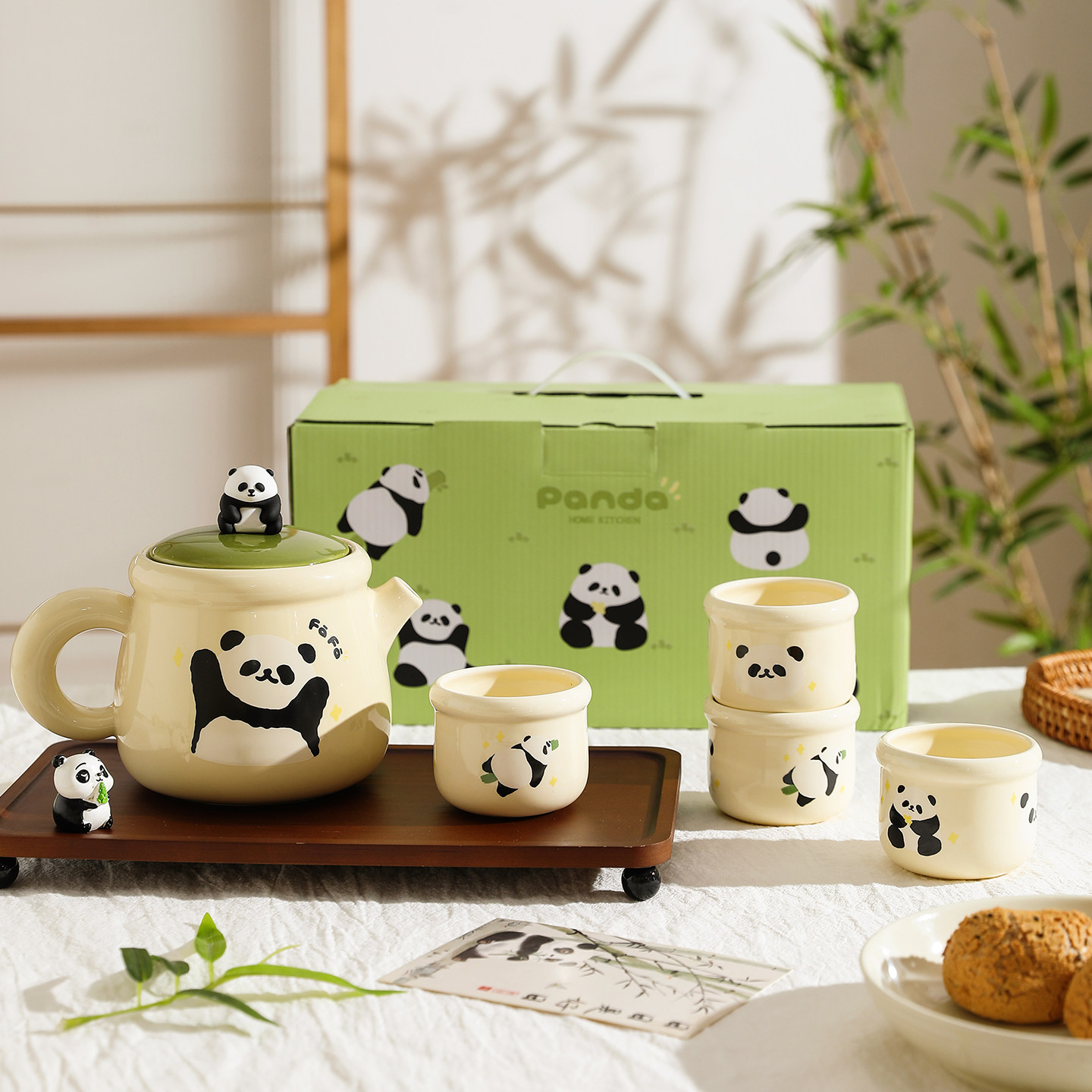 舍里熊猫茶具泡茶壶家用套装陶瓷水具套装乔迁新婚礼物水壶茶杯子