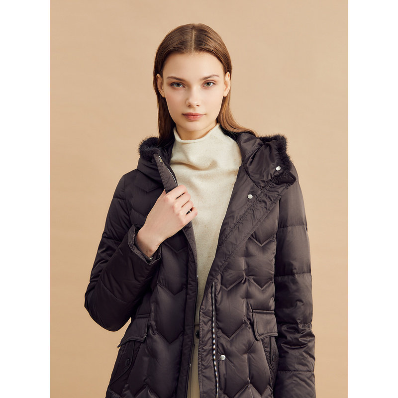 【聚暖白鹅绒】YINER音儿冬季美拉德水貂毛领蓬松羽绒服