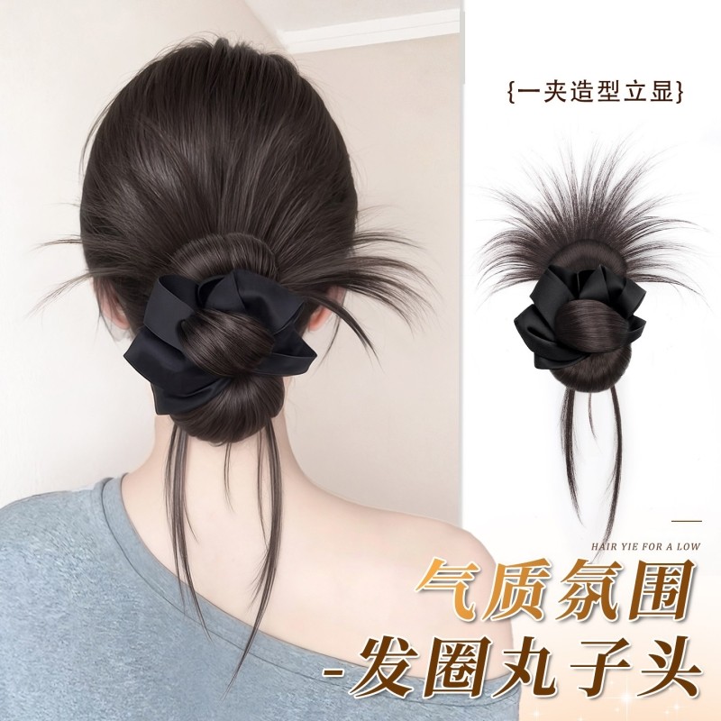 丸子头假发抓夹发圈鸡毛花苞头感盘发神器蓬松低扎假发包发量少