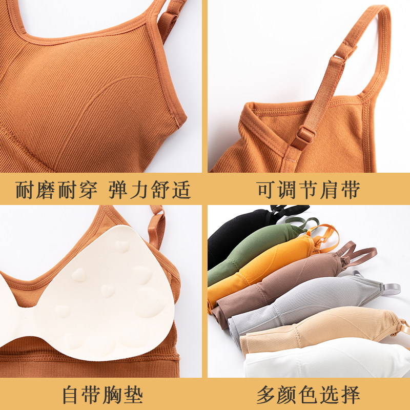 无痕美背抹胸内衣女小胸聚拢可外漏细肩带一体固定杯背心式文胸罩