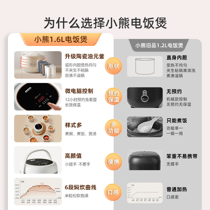 小熊电饭煲家用小型宿舍1到2-3人食烹饪机微压力快煮饭不粘电饭锅