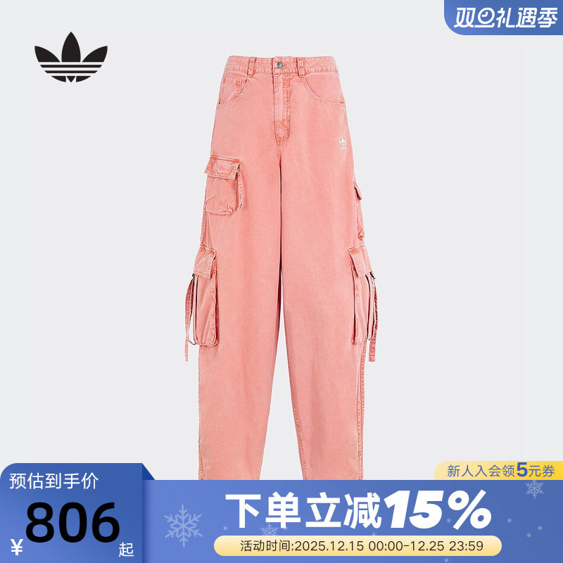 adidas阿迪达斯三叶草多口袋工装运动裤子秋女牛仔长裤KD4114