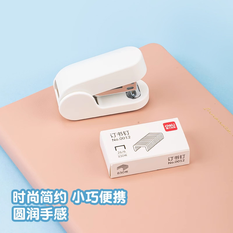 得力迷你订书机学生用订书器办公用品外卖打包小号便携少女可爱风订书钉订书针
