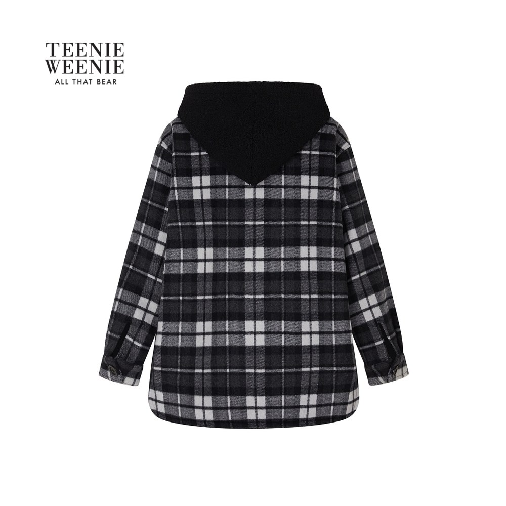 TeenieWeenie小熊奥莱秋冬季复古学院风格纹连帽绵羊毛呢大衣外套