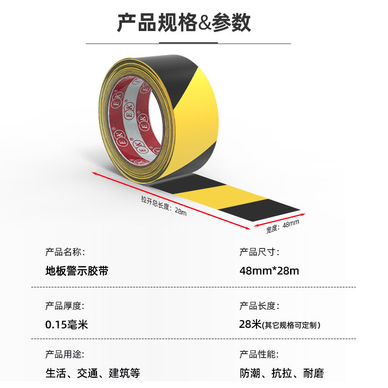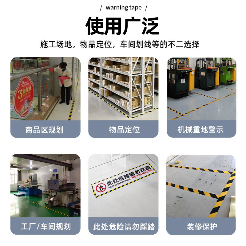PVC黄色胶带高耐磨警示地胶带强力加厚防水胶带警示胶带装修施工车位贴纸划线地标线消防通道线无尘车间标识