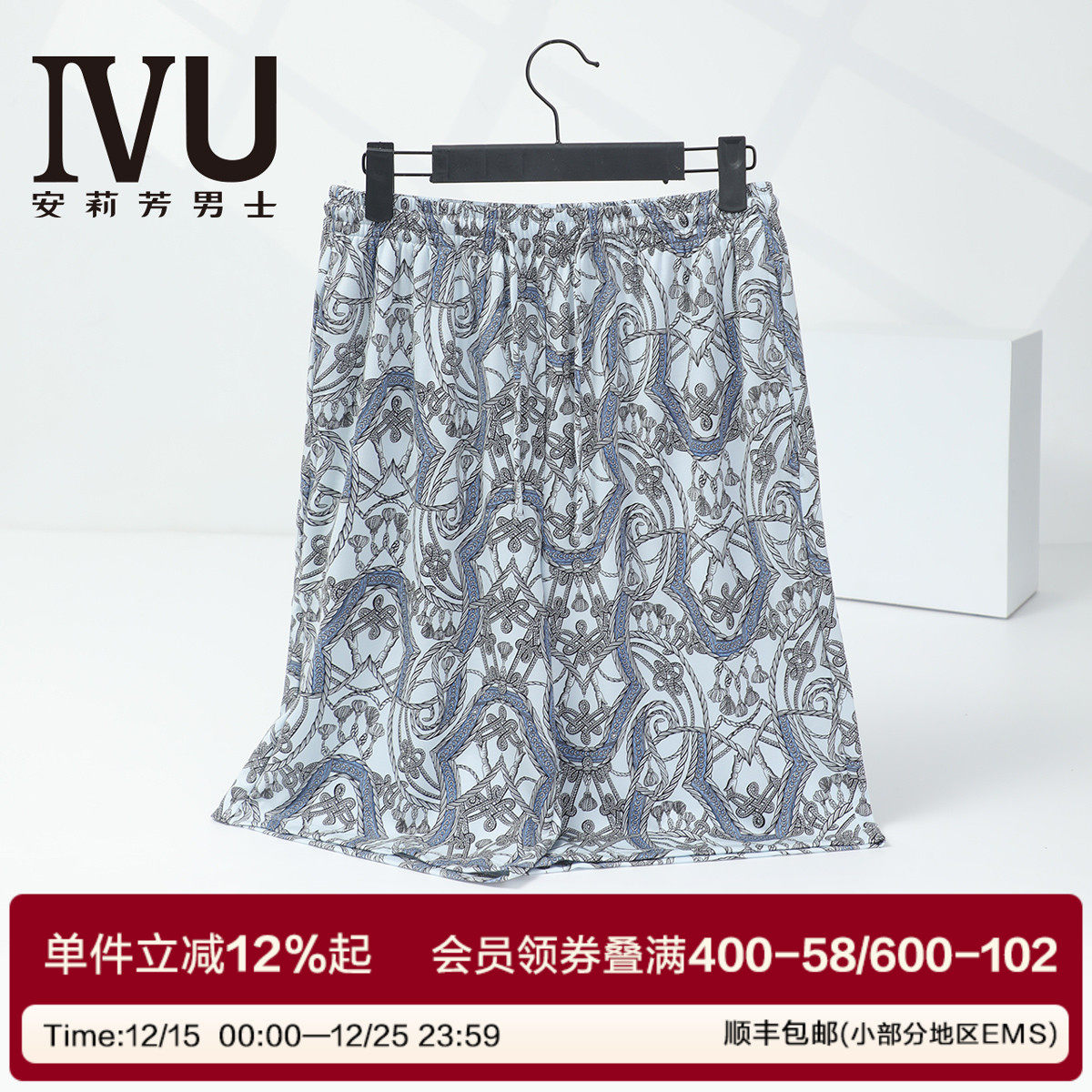安莉芳旗下IVU男莫代尔混纺印花短裤家居服睡裤