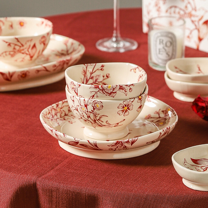 高档碗碟餐具陶瓷新婚礼物送新娘红色碗盘筷套装乔迁新居结婚礼盒