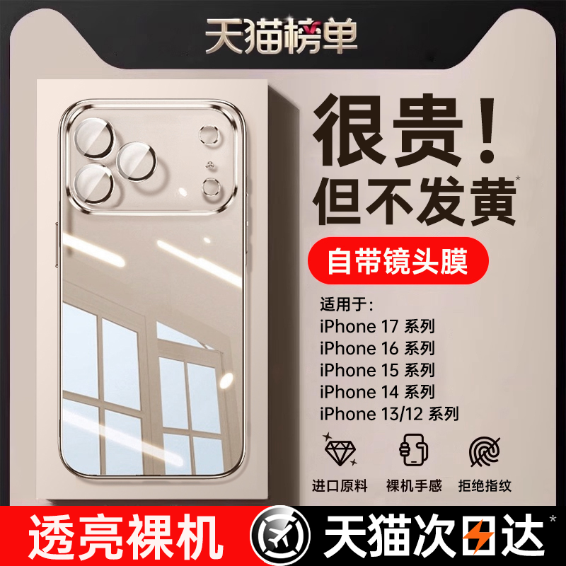 防摔气囊]第一卫适用苹果16手机壳iPhone17promax新款15超薄14透明硅胶13镜头16e全包12plus高级感11保护套外