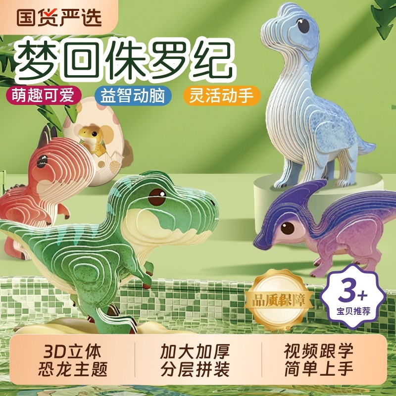 恐龙拼插模型3到6岁纸质儿童玩具动物3d立体益智手工DIY拼装国货