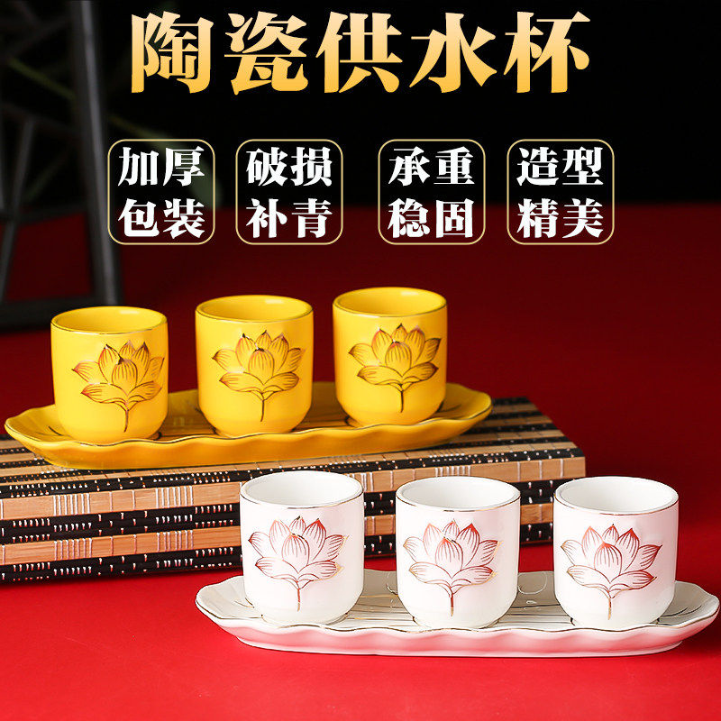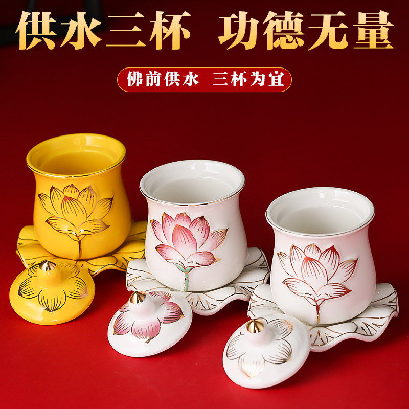 佛前供杯家用摆件莲花杯大悲水佛具陶瓷观音圣水杯佛堂供佛净水杯