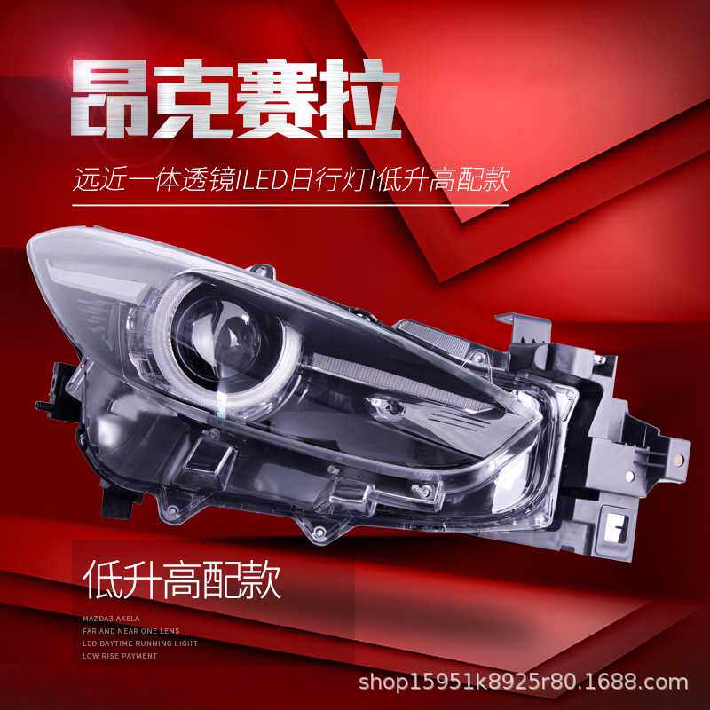 适用于14-19款马自达3昂克赛拉大灯总成改装氙气灯透镜LED日行灯
