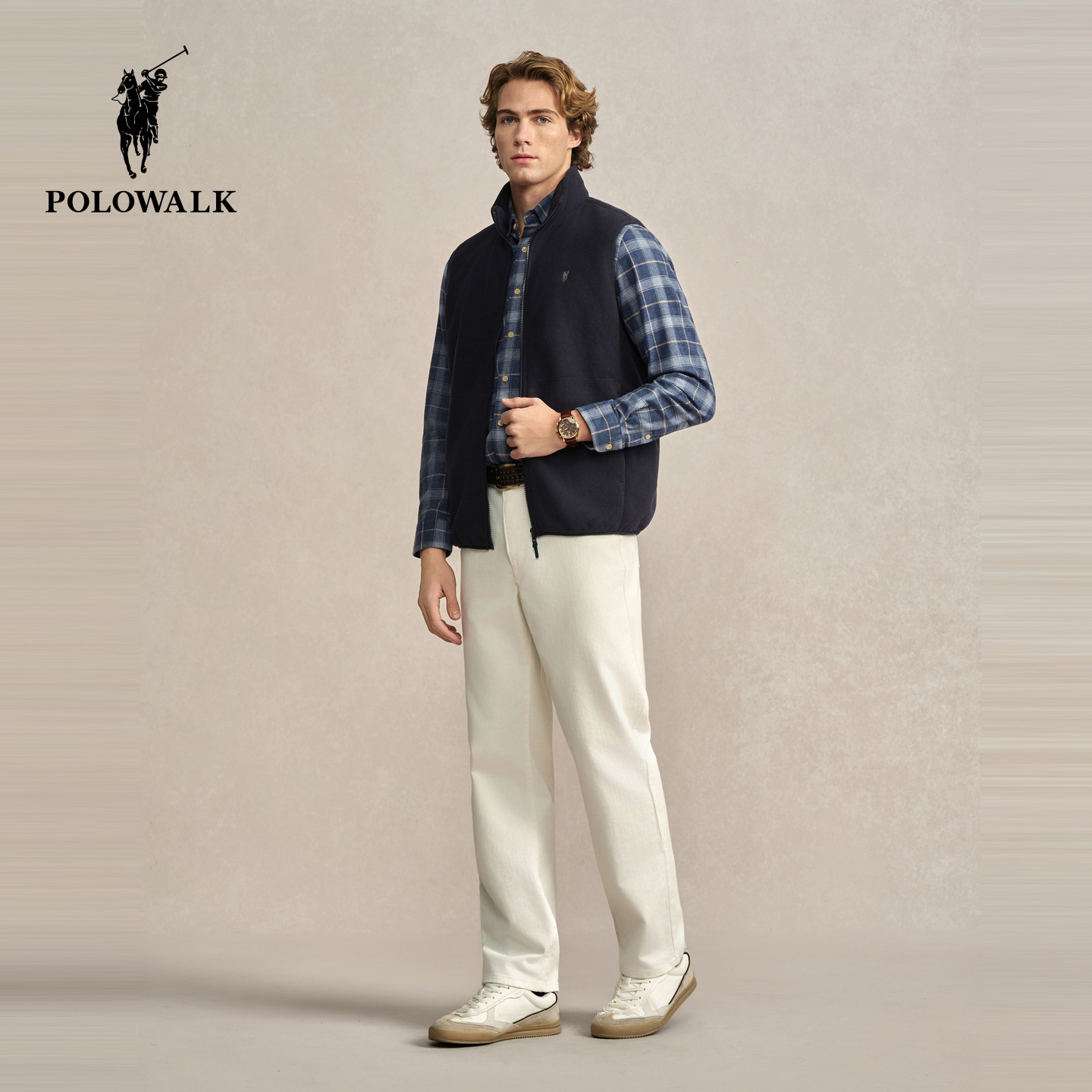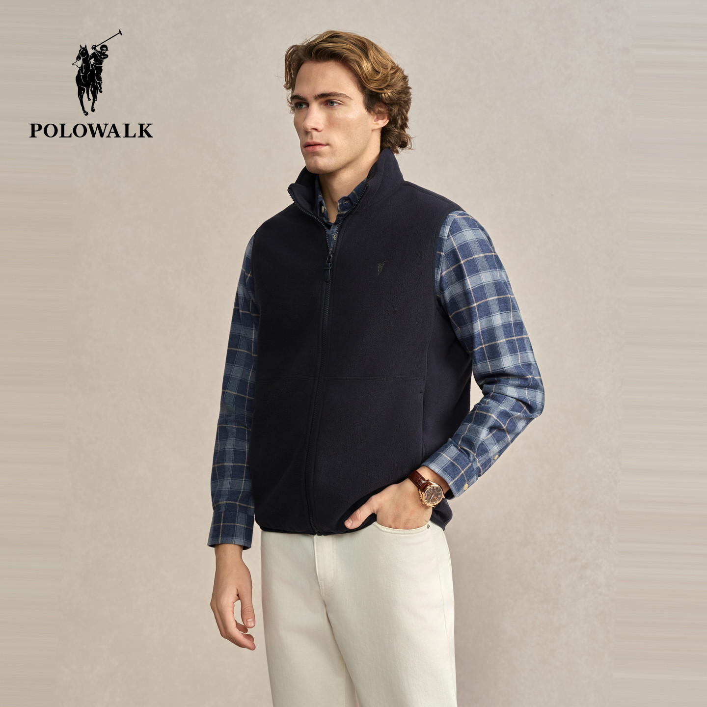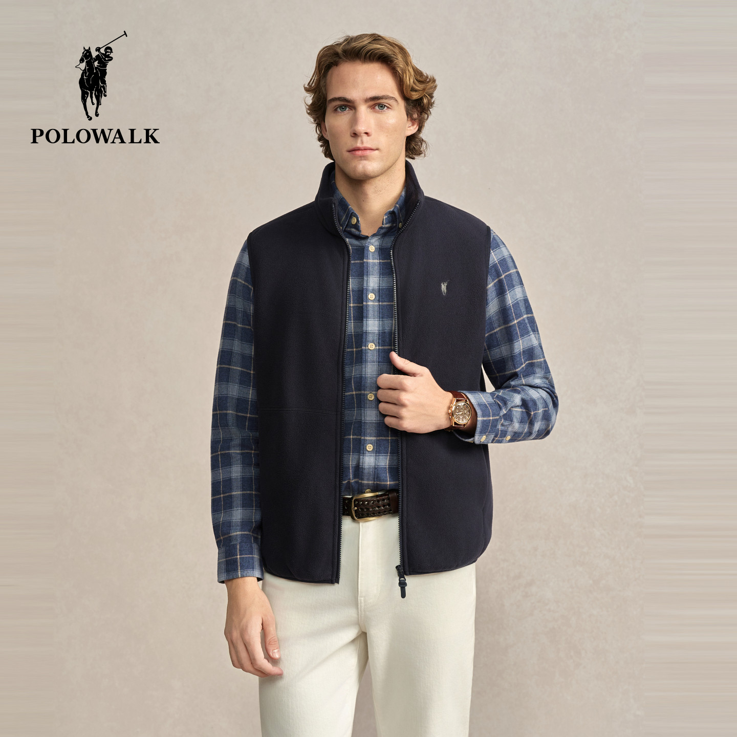 POLOWALK男式马甲2025冬季新品简约立领加绒休闲拉链摇粒绒马甲