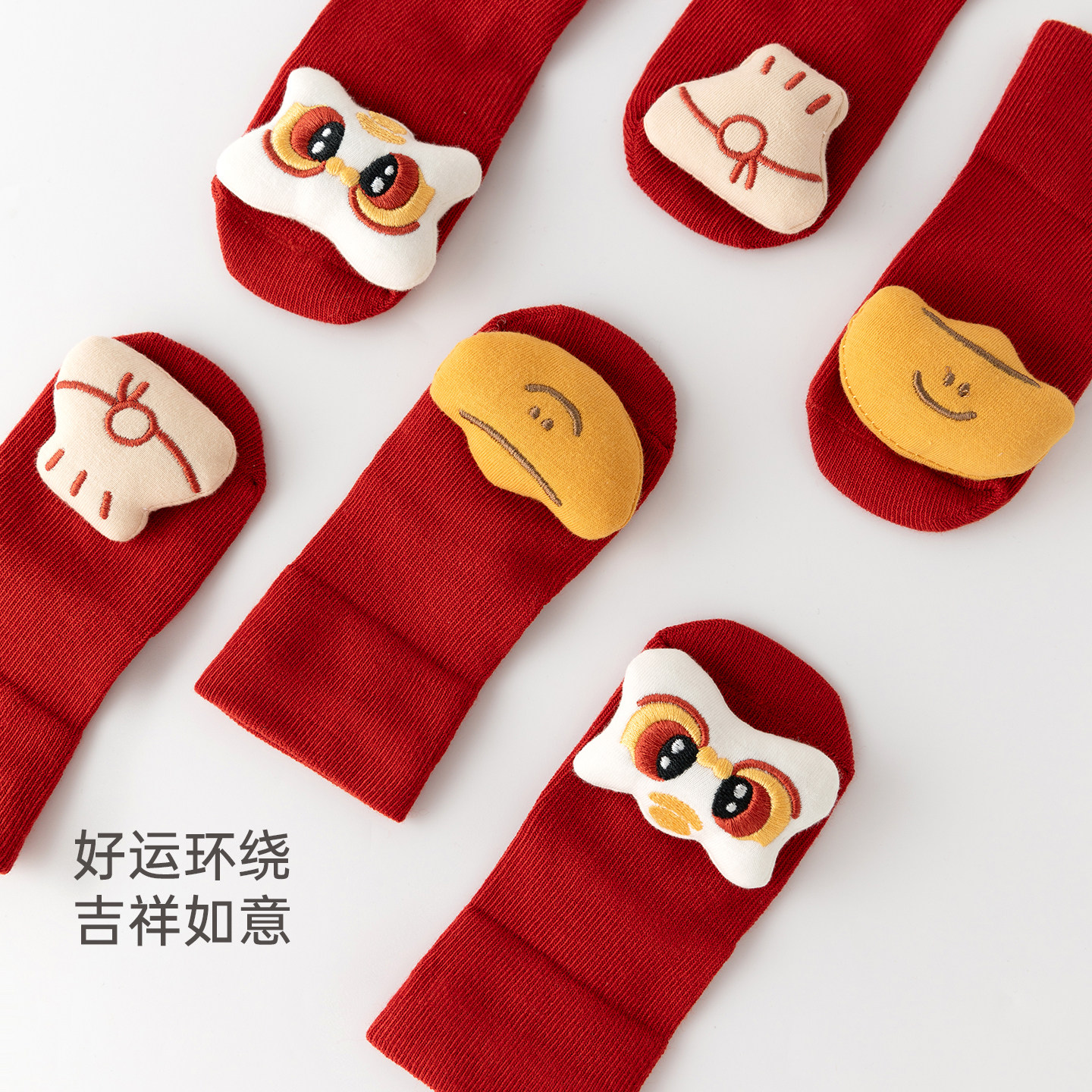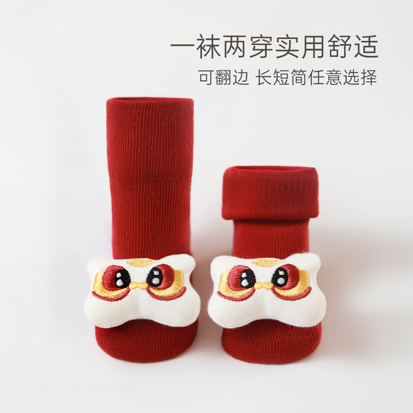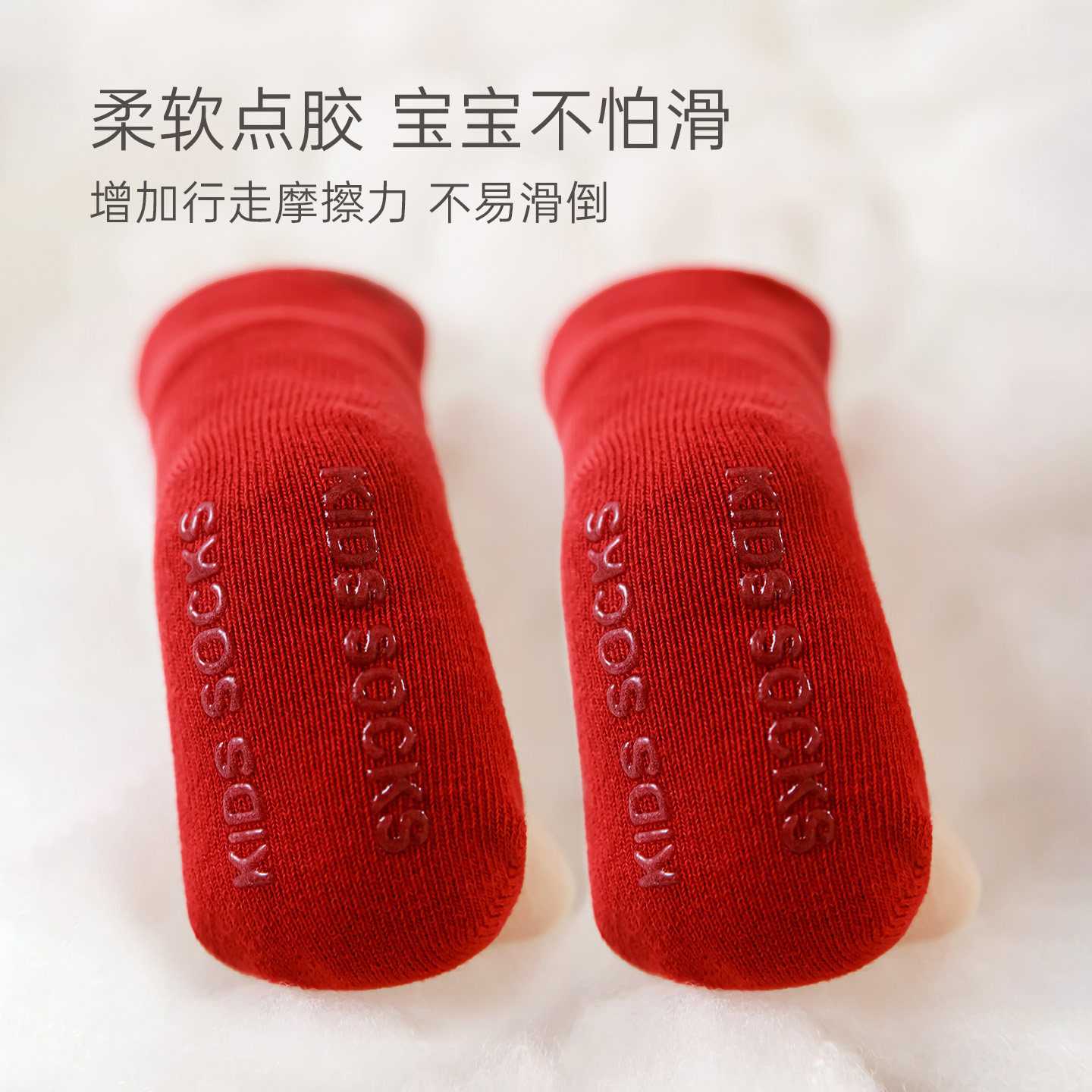 【10A抗菌】 新生儿保暖袜冬季婴儿防滑红色喜庆袜宝宝弹力新年袜