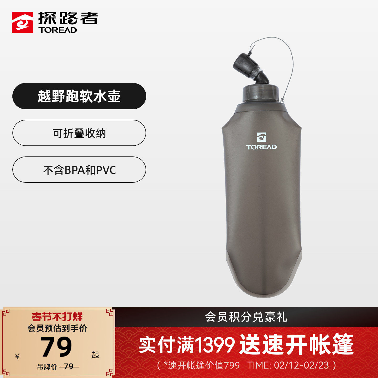 探路者500ML越野跑软水壶户外运动徒步登山装备便携式可折叠水杯