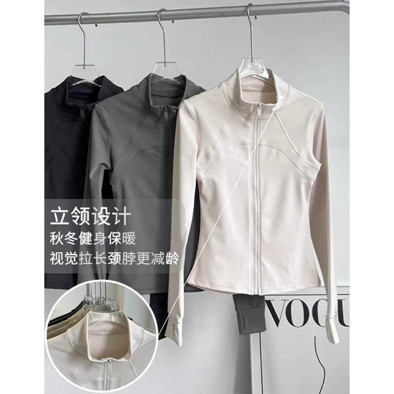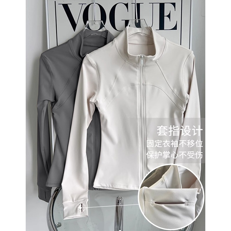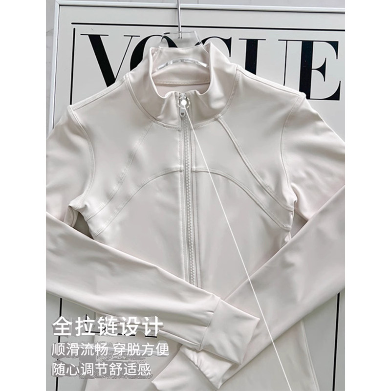 加绒运动外套女显瘦健身服弹力瑜伽服套装上衣春夏款薄绒速干白色