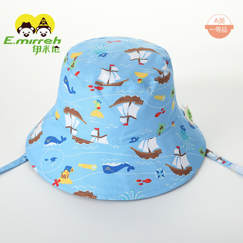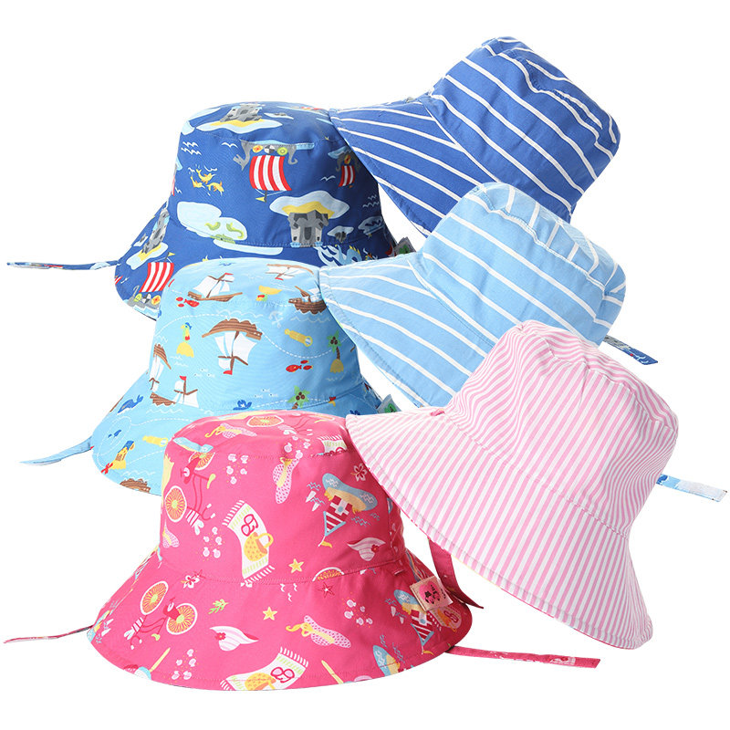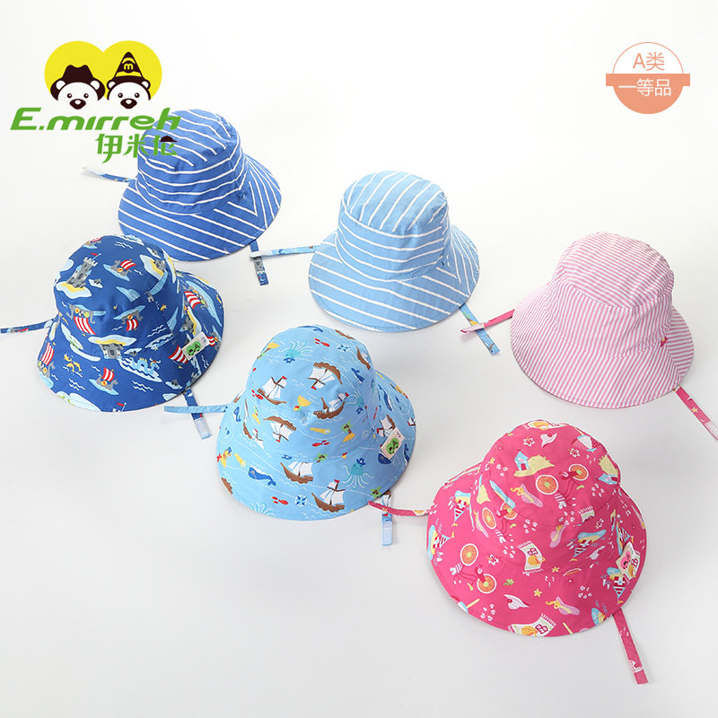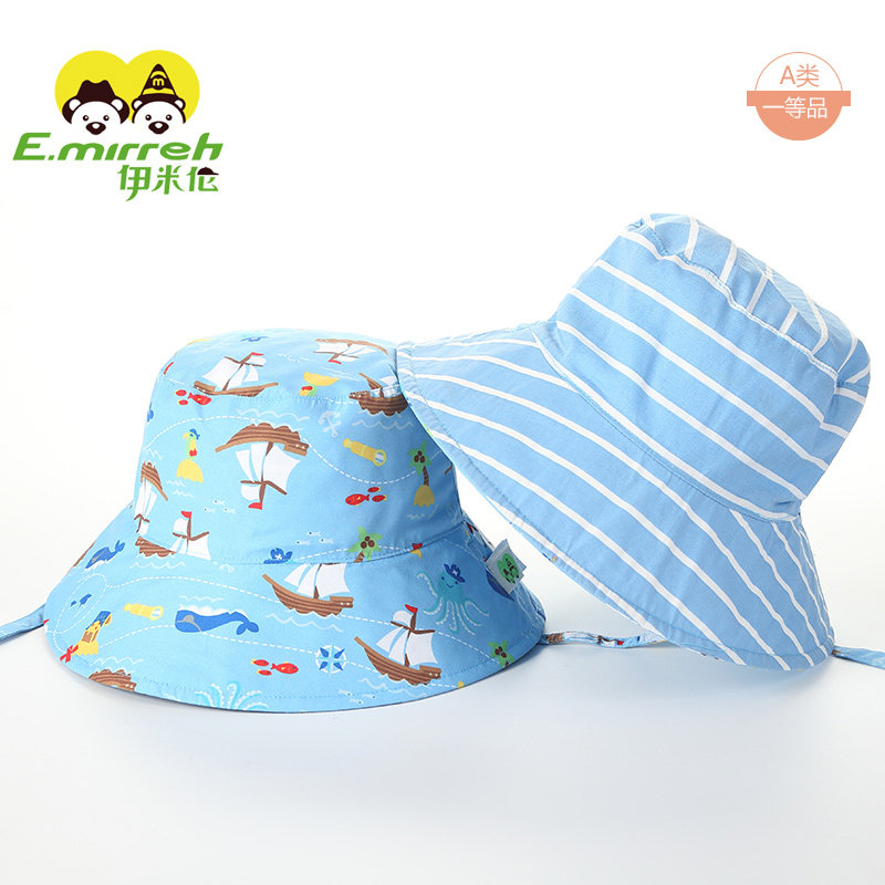 防紫外线婴儿遮阳帽儿童太阳帽春夏季双面带男女宝宝渔夫帽加大檐