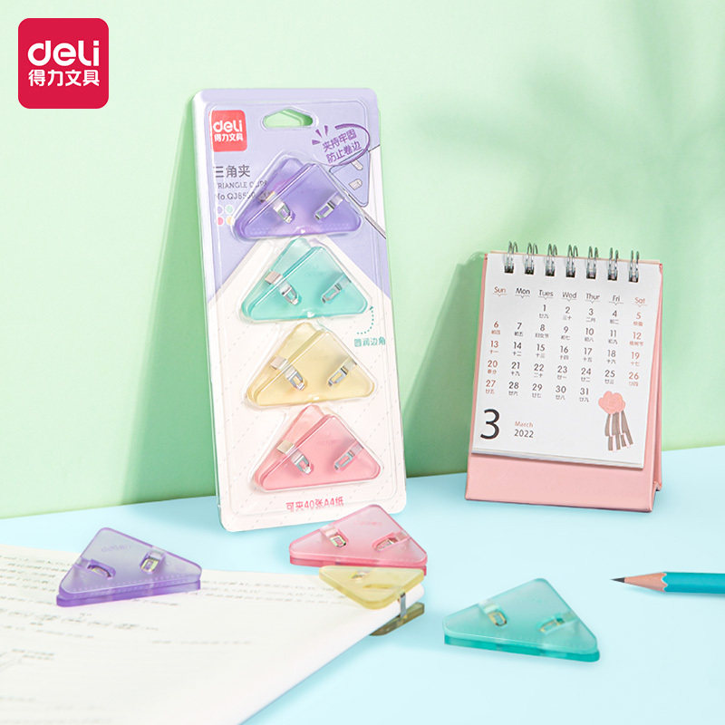 得力三角文件夹小学生收纳整理资料试卷夹文具卷子夹书夹临时装订档案夹夹子书本防卷角票据发票三角夹边角夹