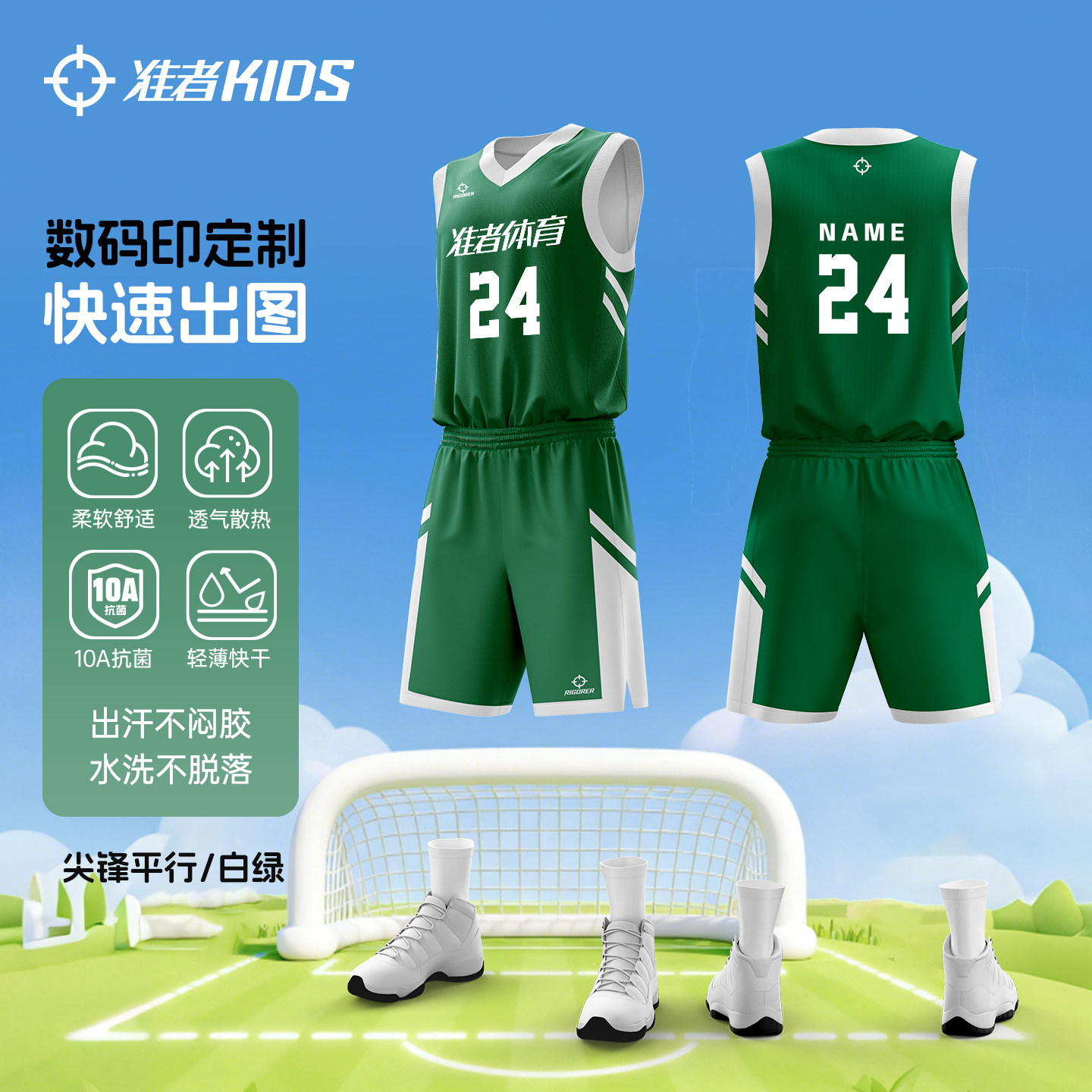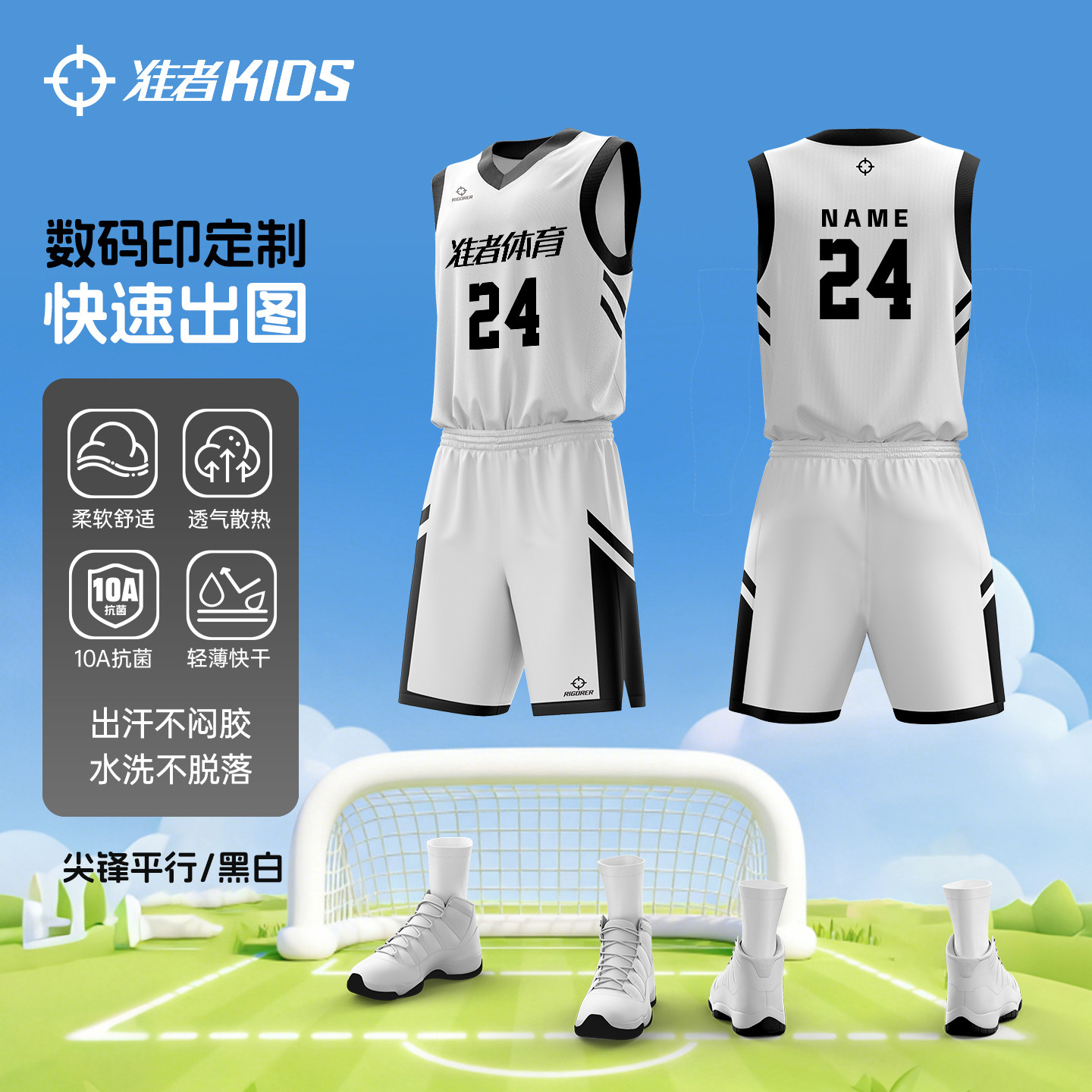 准者儿童篮球服10A抗菌球衣定制数码印比赛服运动训练套装