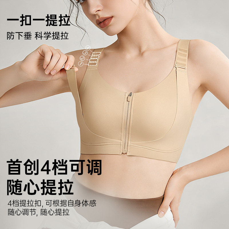 润微一拉薄3.0pro大胸显小内衣女无痕前扣拉链收副乳运动大码文胸