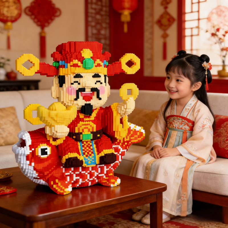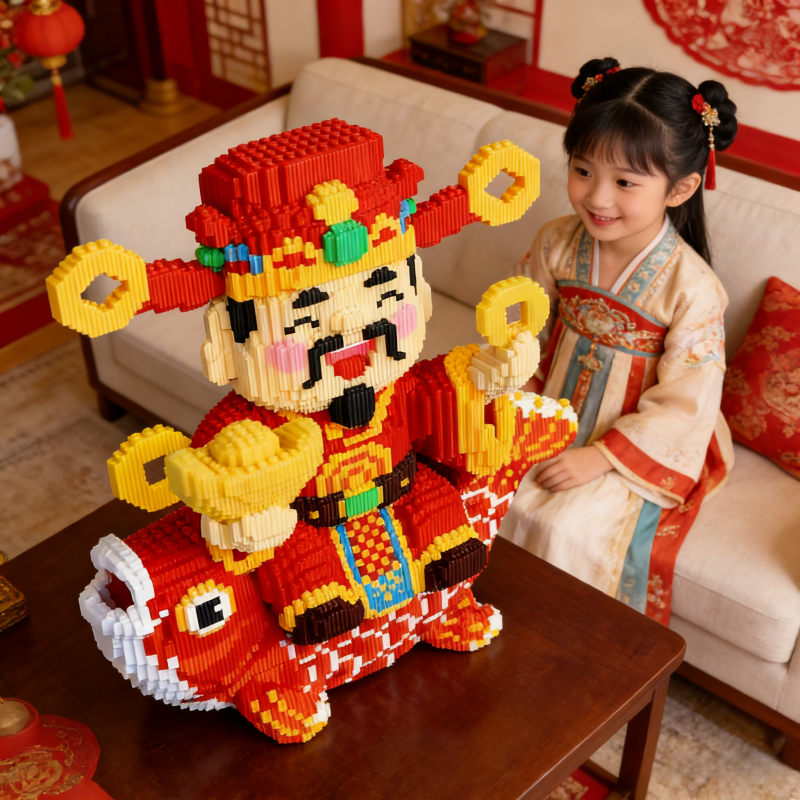 2026年巨大锦鲤财神爷积木益智拼搭儿童玩具立体模型摆件生日礼物