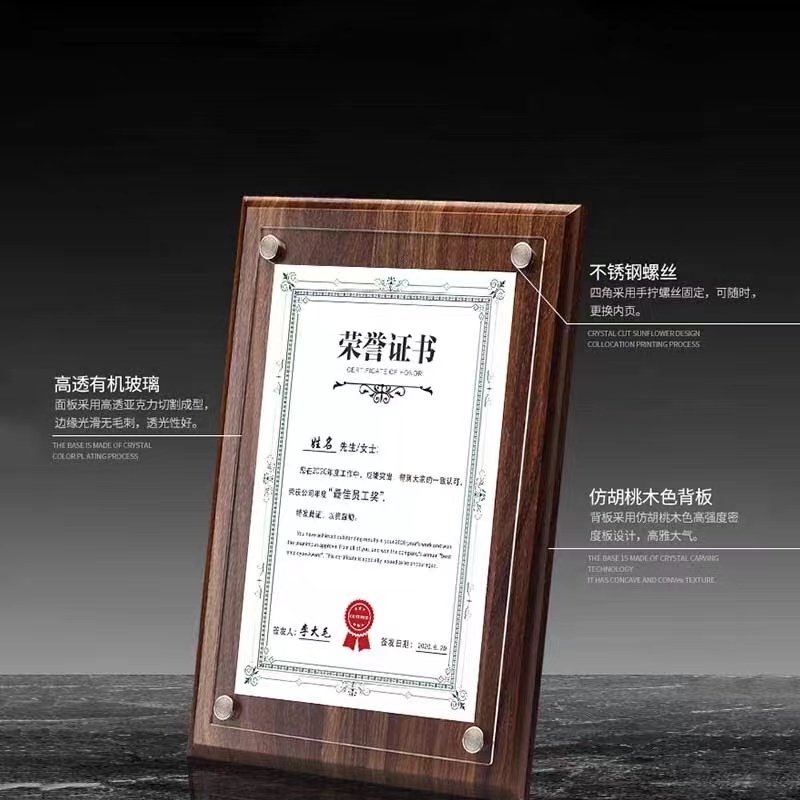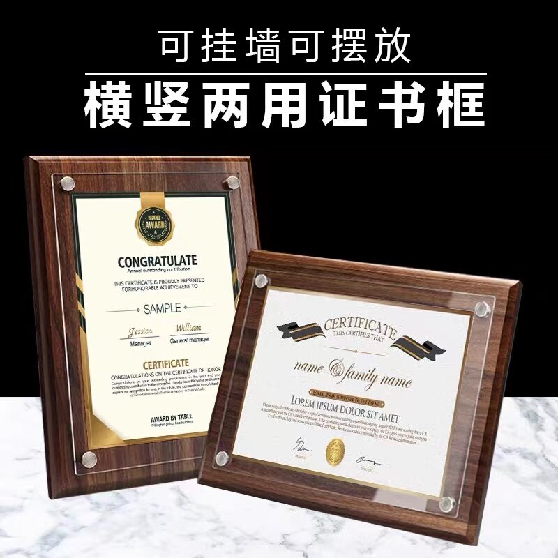 赛兄纳弟授权牌奖牌定制木质荣誉证书框a4裱框摆台专利证书金属授权书实木相框牌匾挂墙亚克力水晶牌制作