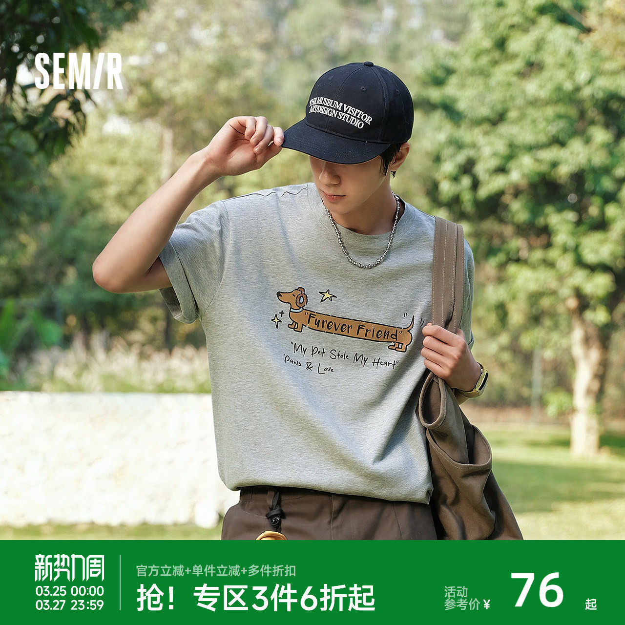 森马230g重磅萌宠印花T恤2026夏新款无性别微阔上衣高街潮流短袖
