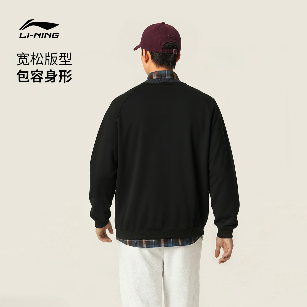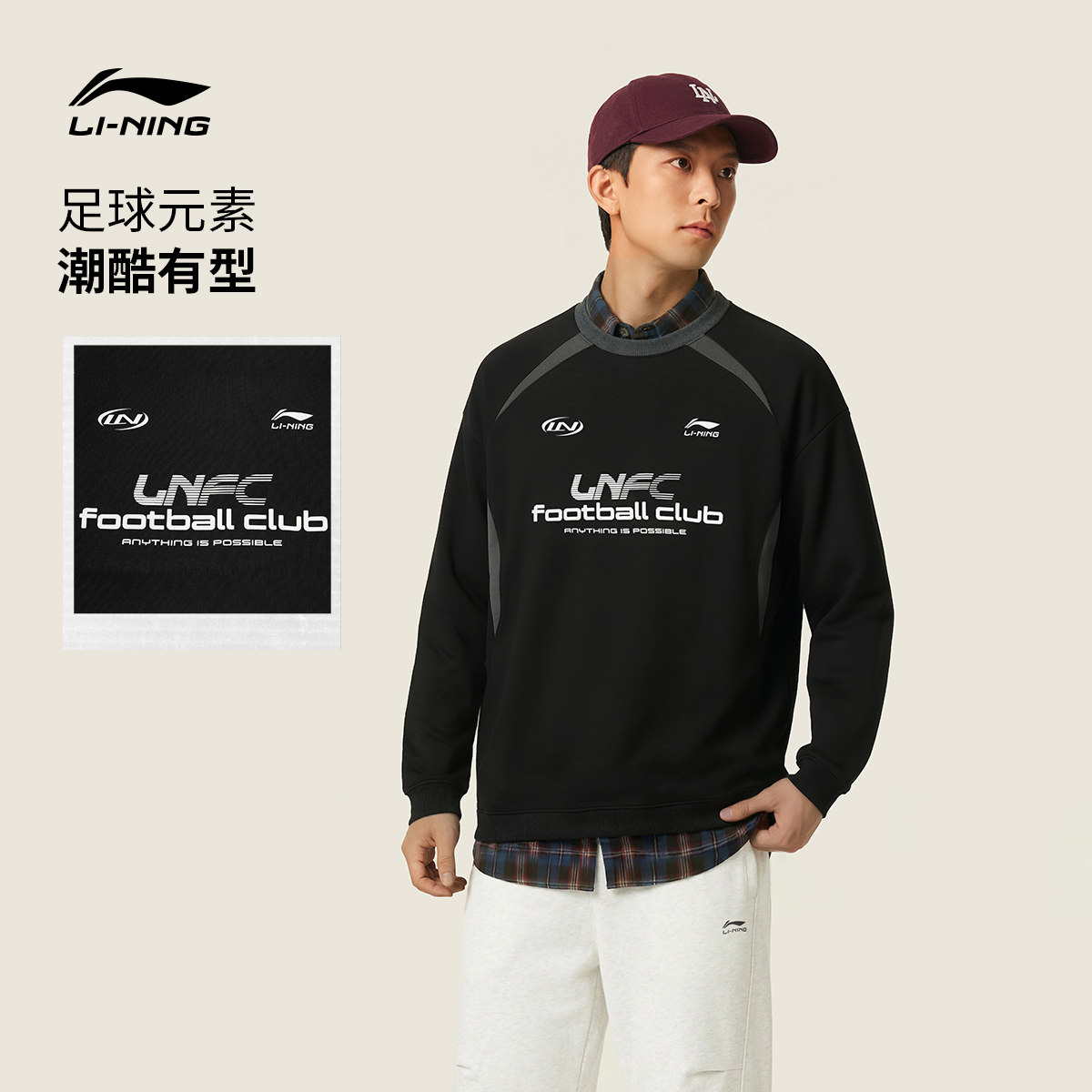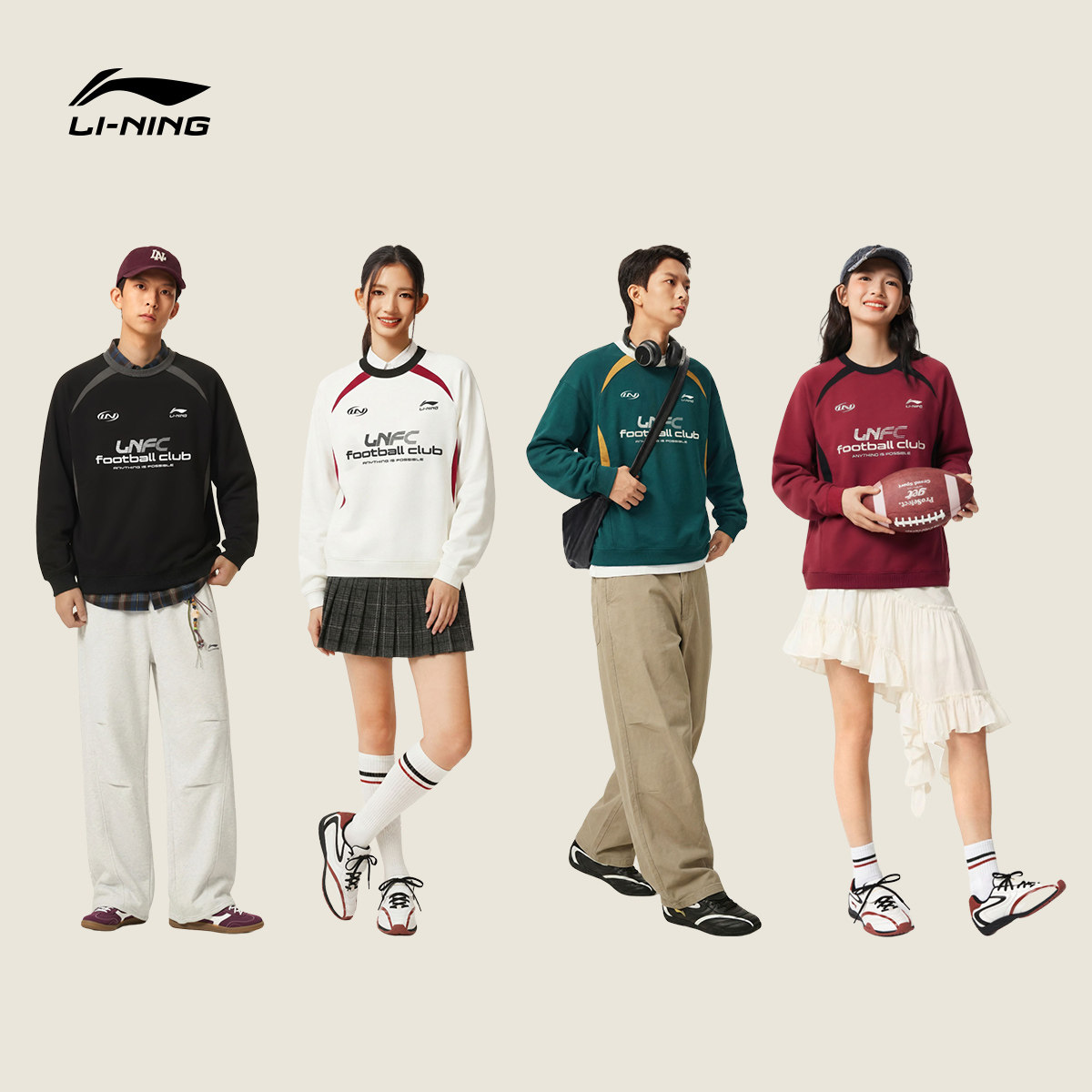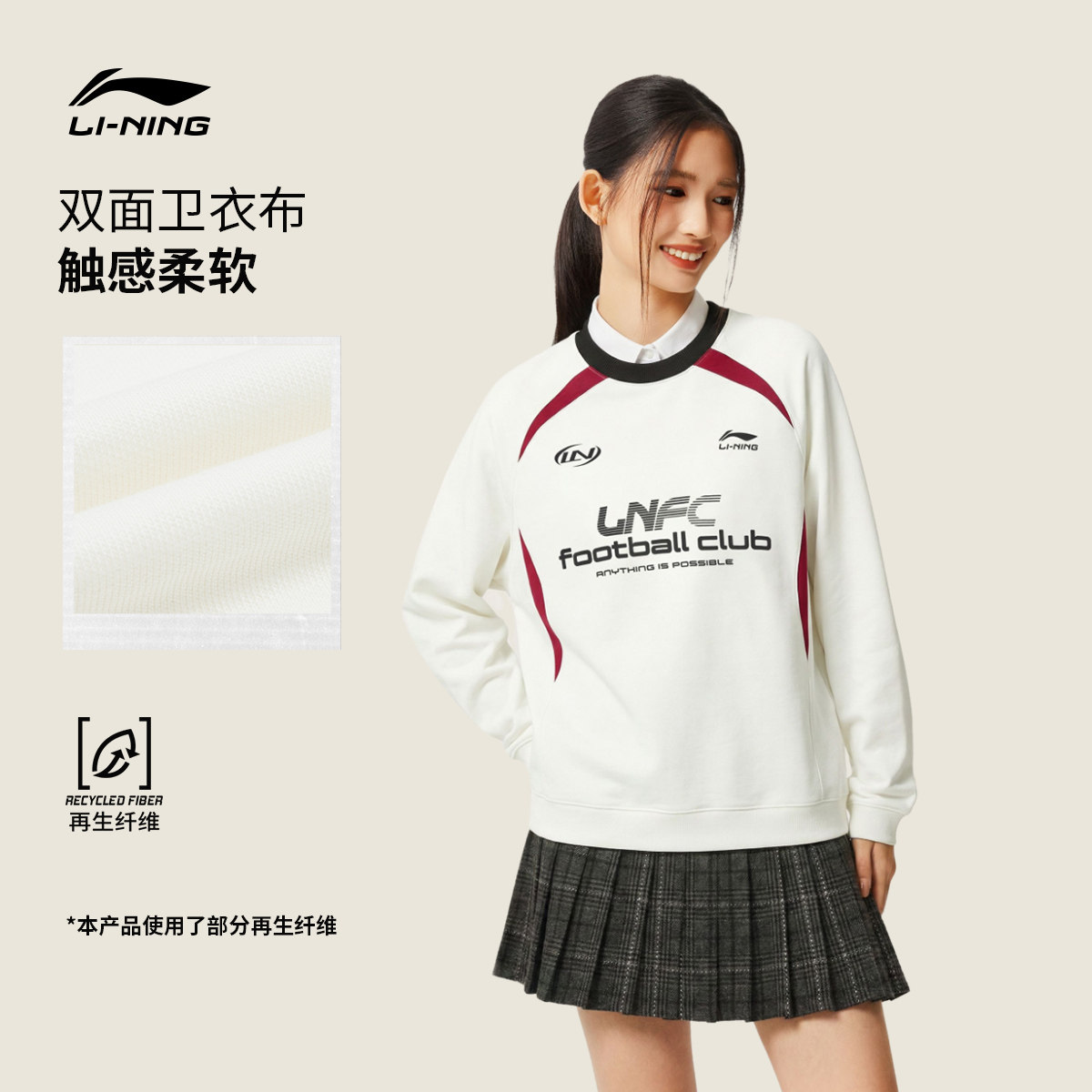 李宁球迷风卫衣女春季2026新款情侣上衣红色宽松长袖针织运动服男