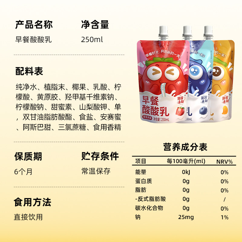 臻味永和酸酸乳蓝莓味黄桃草莓饮品袋装0脂0卡风味饮料柠檬好喝