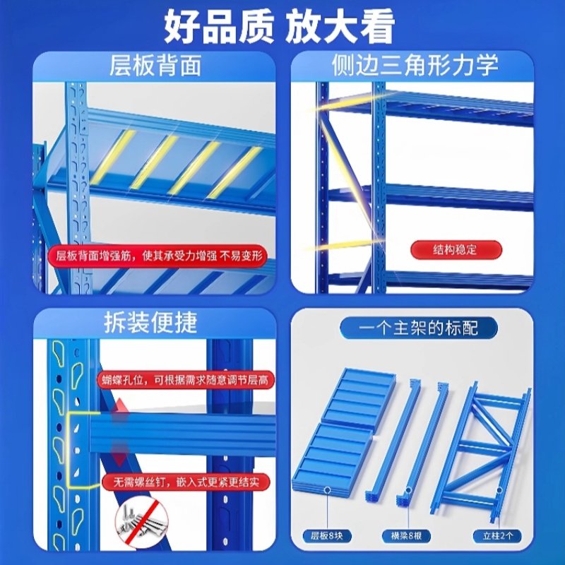 仓储货架多层置物架超强承重仓库重型货物架快递储物架家用铁架子