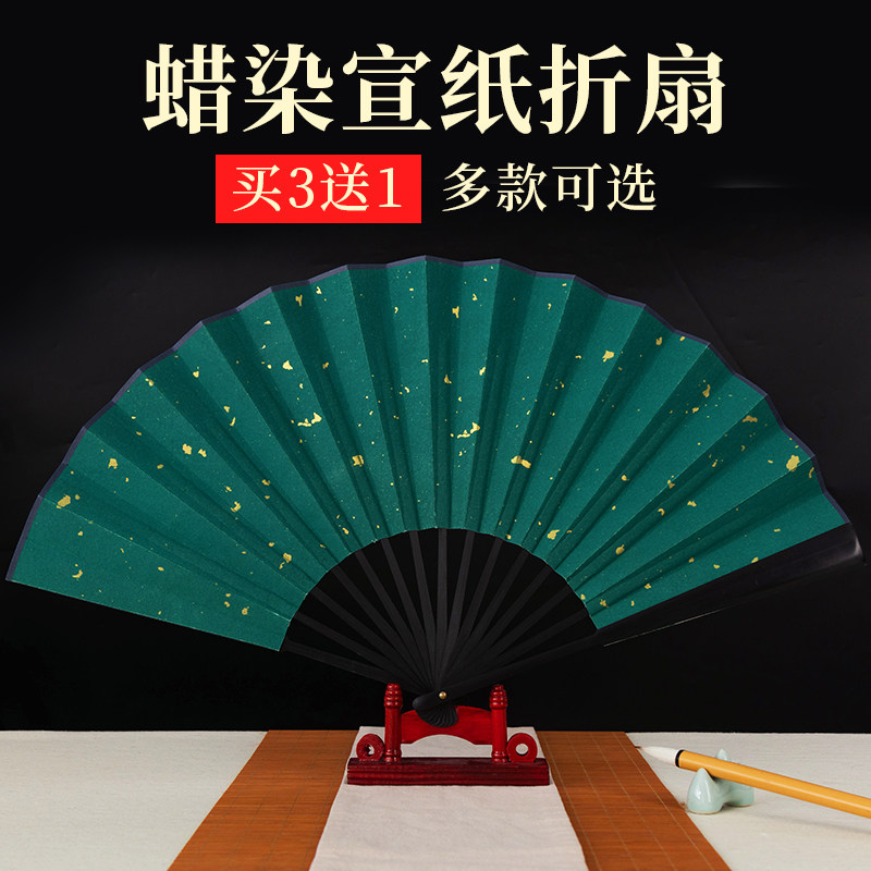 10寸蜡染宣纸折扇空白扇面中式古风扇子儿童文创diy绘画书法国画折扇定制双面彩色纸扇道具文玩便携扇子男款