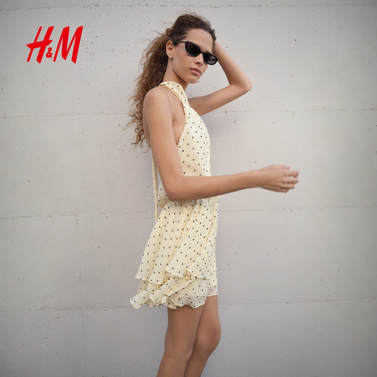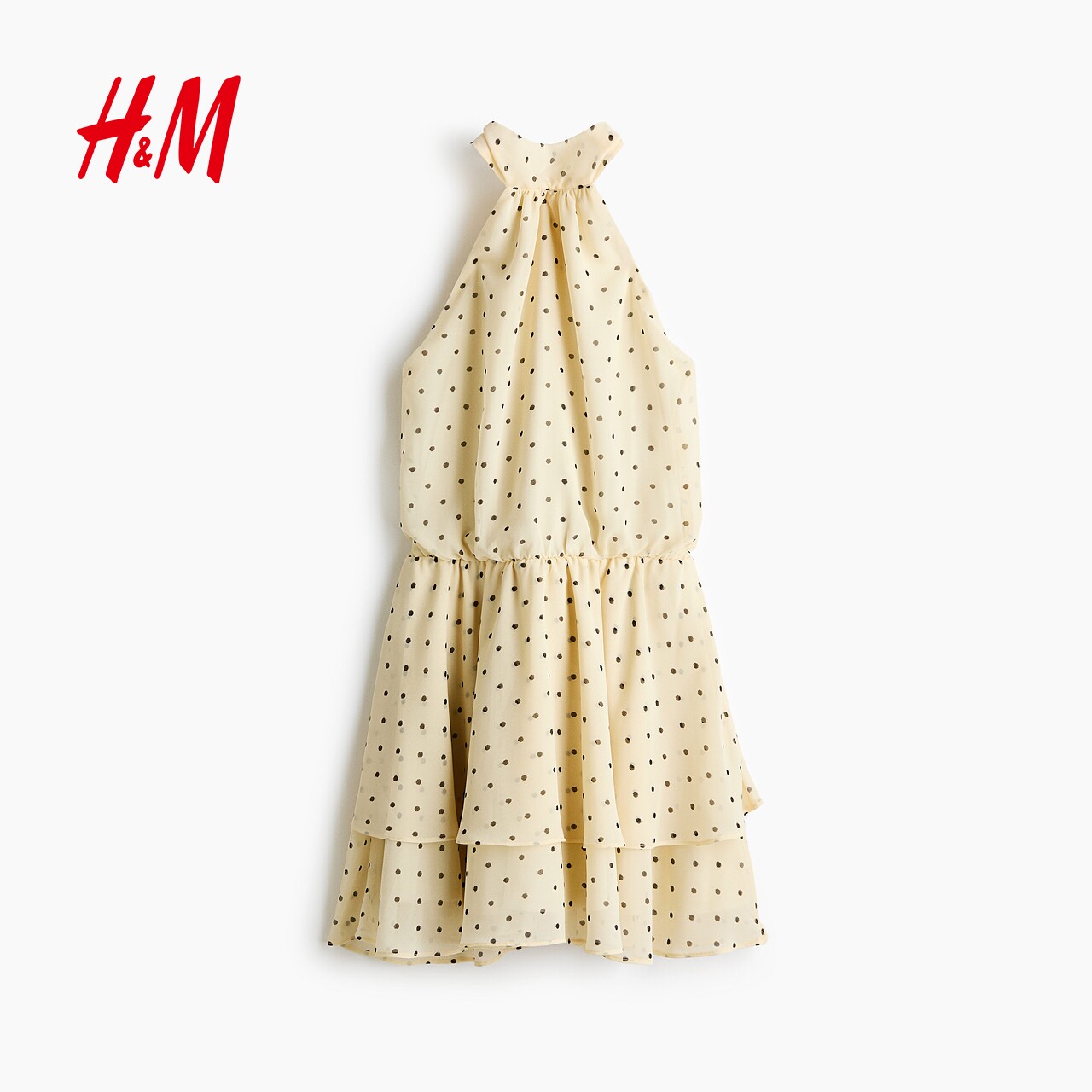 HM女装连衣裙2026春季新款雪纺挂脖露背波点出游连身裙1325841