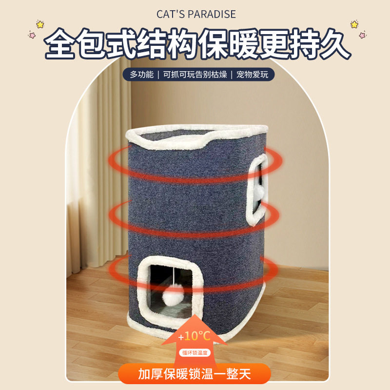 多层猫窝剑麻桶猫爬架树洞一体加粗加大耐抓冬天保暖猫咪用品猫窝