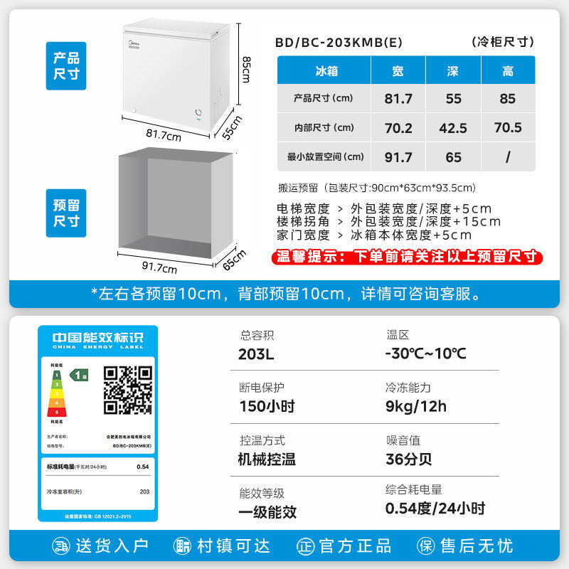 美的100/143/203L小冰柜家用小型冷冻商用冷柜冷藏冰箱官方