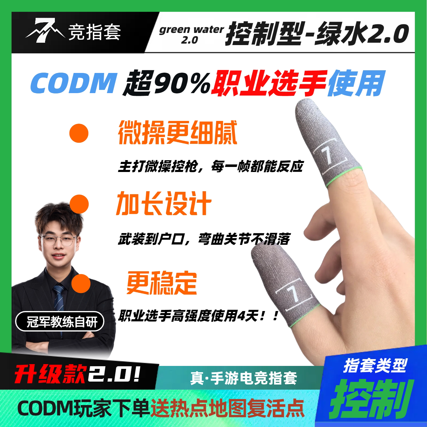 7竞绿水2.0使命召唤职业同款电竞指毫米微操银纤维指套