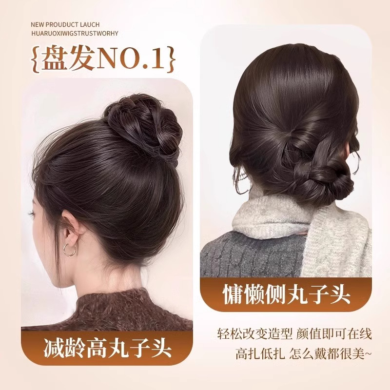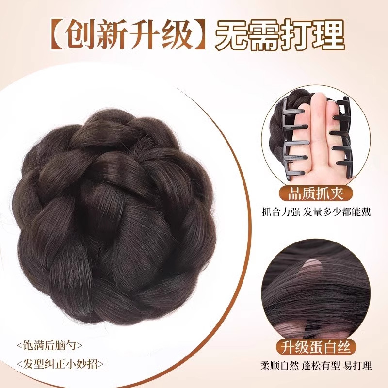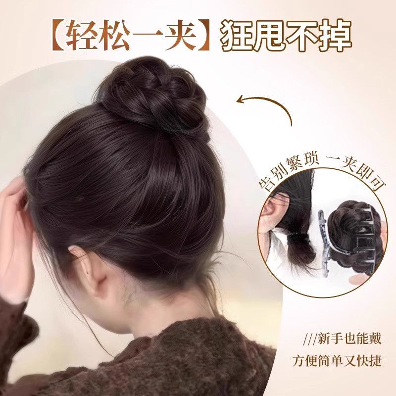 丸子头假发圈龙须抓夹花苞头自然高颅顶慵懒盘发神器蓬松发包扁头