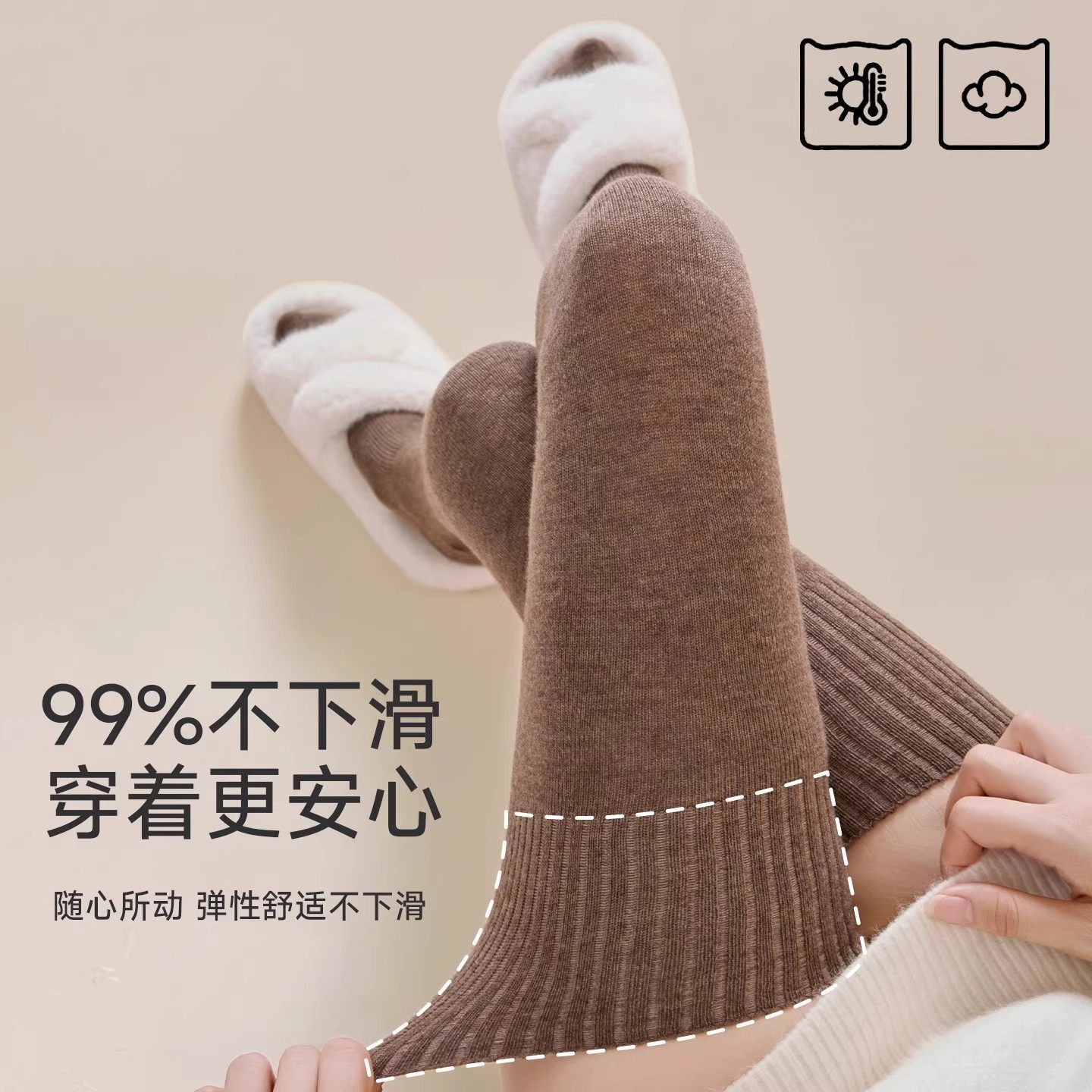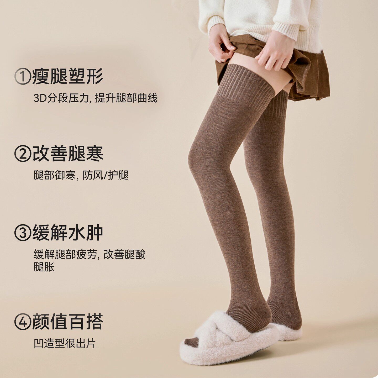 过膝袜子女秋冬羊毛长筒袜加厚保暖护膝大腿袜纯棉压力显瘦高筒袜