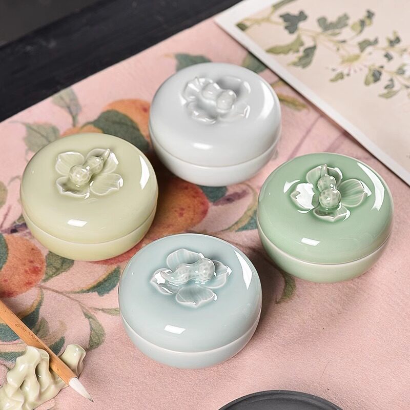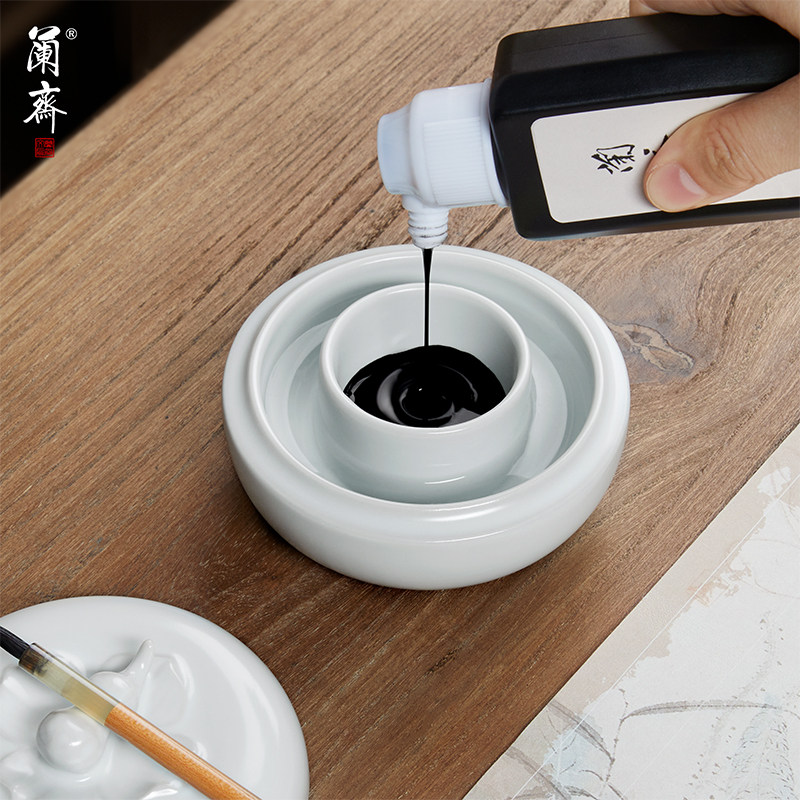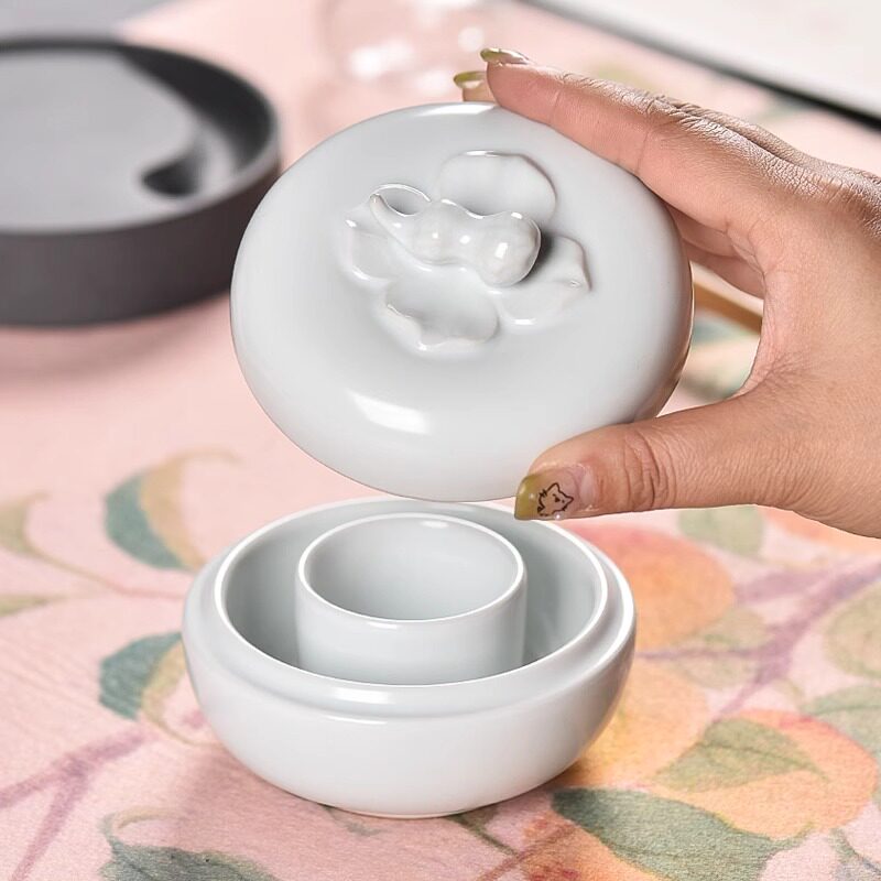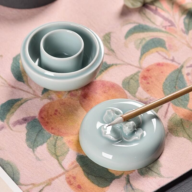 兰斋好柿花生陶瓷火锅砚多功能书法专用带盖保湿防干墨火锅砚台青瓷汝窑砚台墨碟墨盒装墨汁洗笔文房四宝摆件