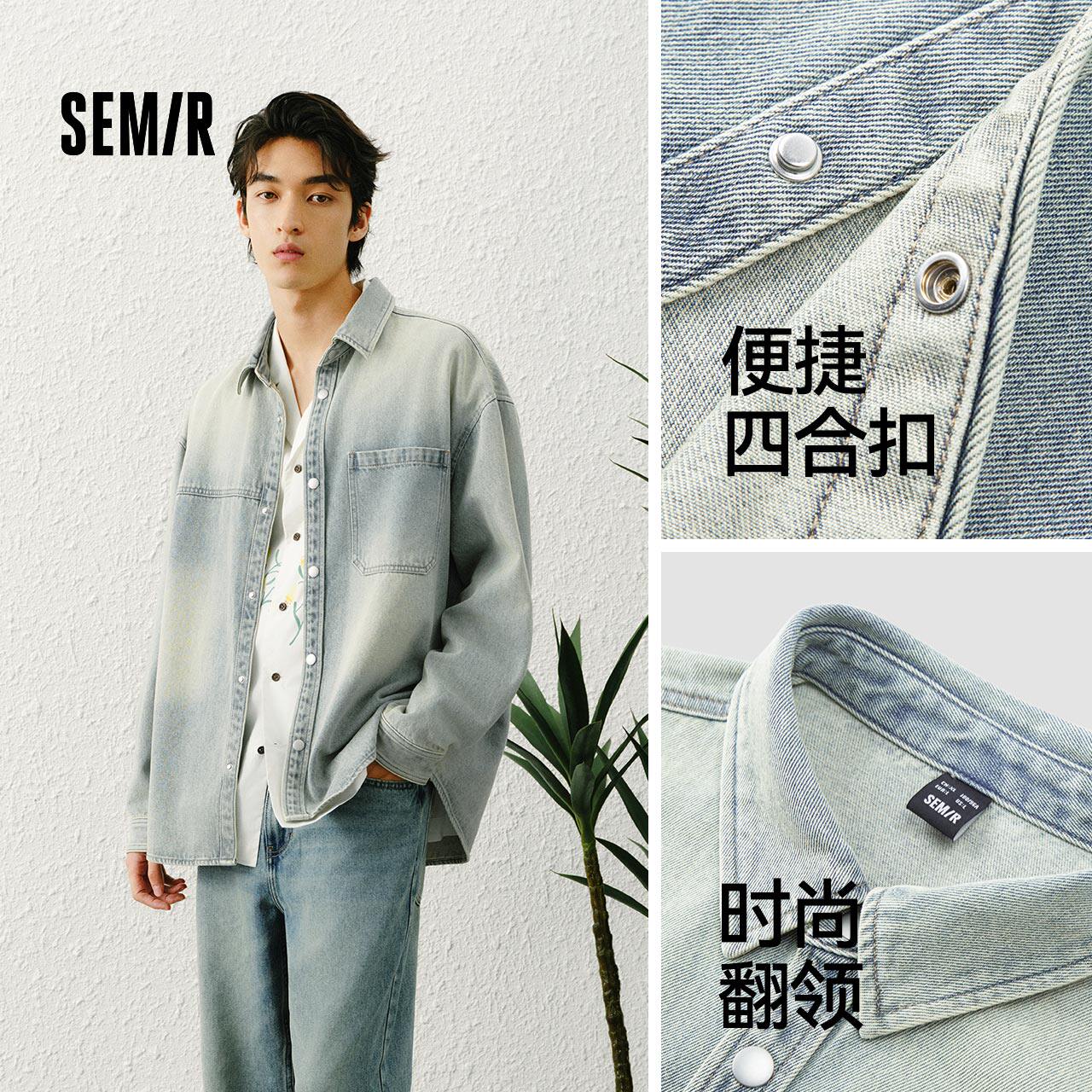JIELNSELN简圣秋冬牛仔衬衫男新款翻领休闲上衣高级男装百搭外套