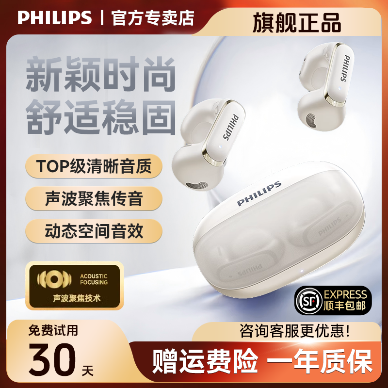 飞利浦TAT4459蓝牙耳机耳夹式运动跑步不入耳降噪高音质2026新款