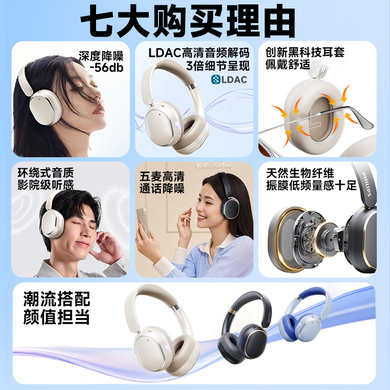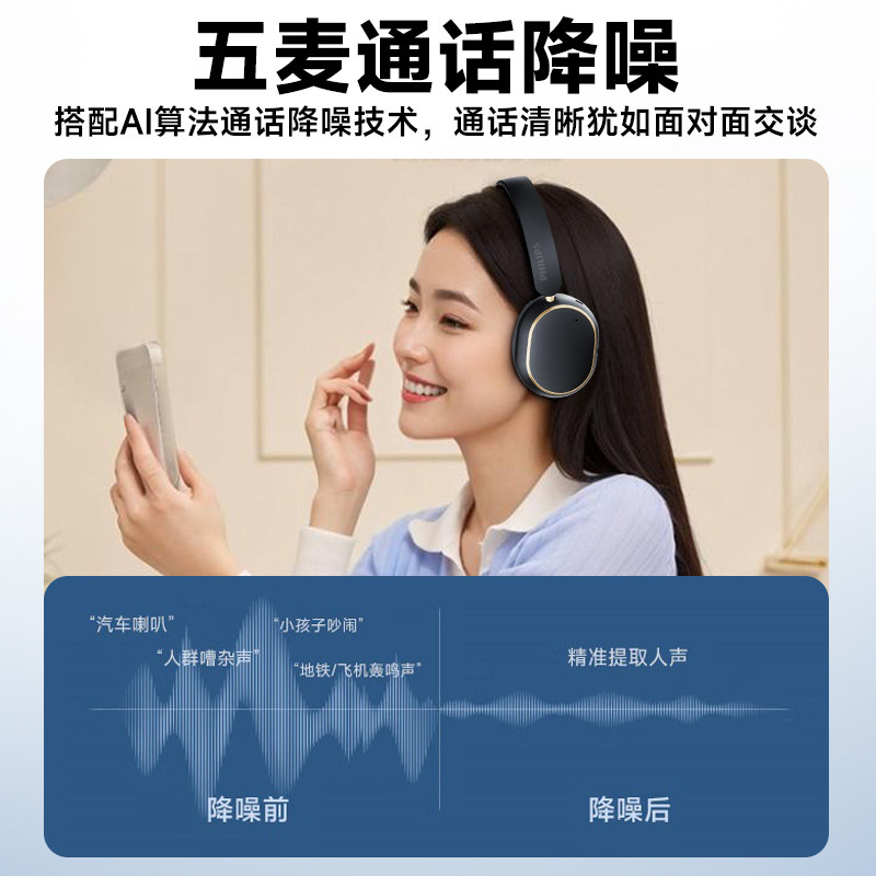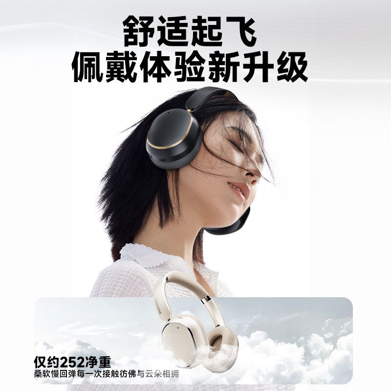 飞利浦TAH6519头戴式蓝牙耳机无线anc主动降噪舒适游戏电竞耳麦
