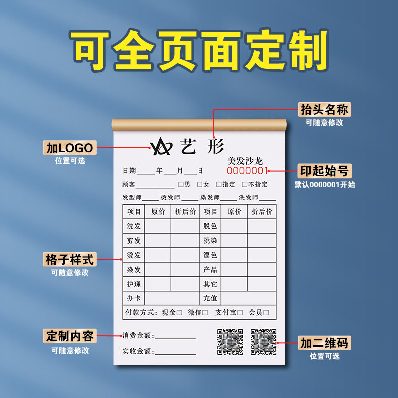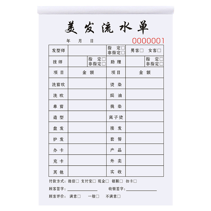 美发流水单定制发型师手工收银账单美容美甲单据发廊理发店开单本