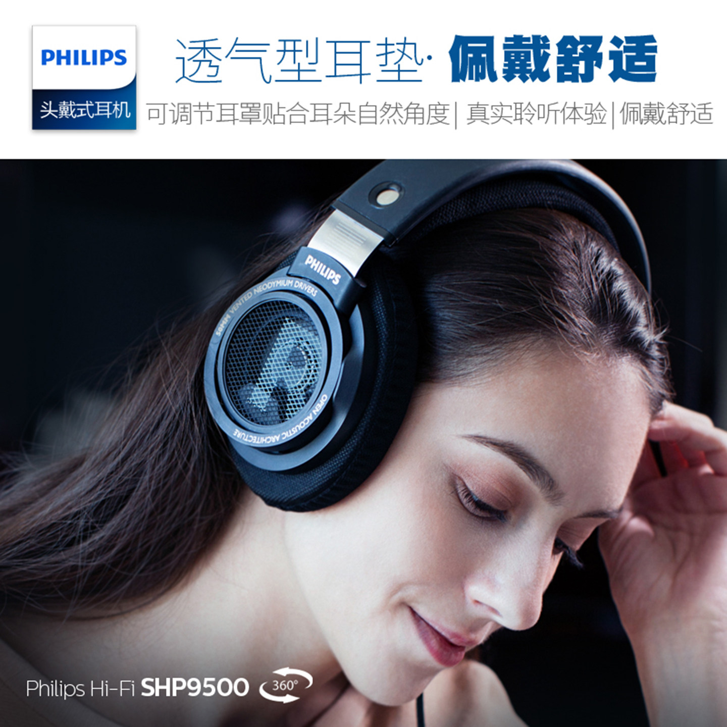 飞利浦SHP9500有线hifi耳机电脑电竞游戏耳机头戴式耳机立体声