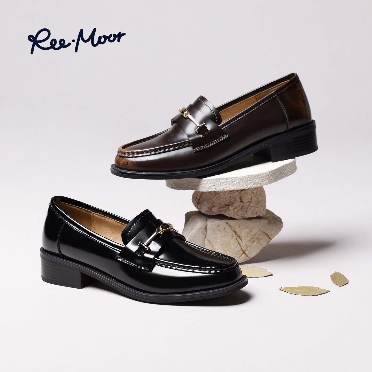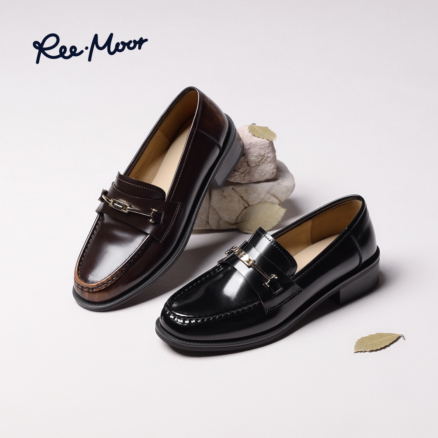 REEMOOR睿慕2026春季新款英伦风漆皮乐福鞋女圆头厚底复古小皮鞋