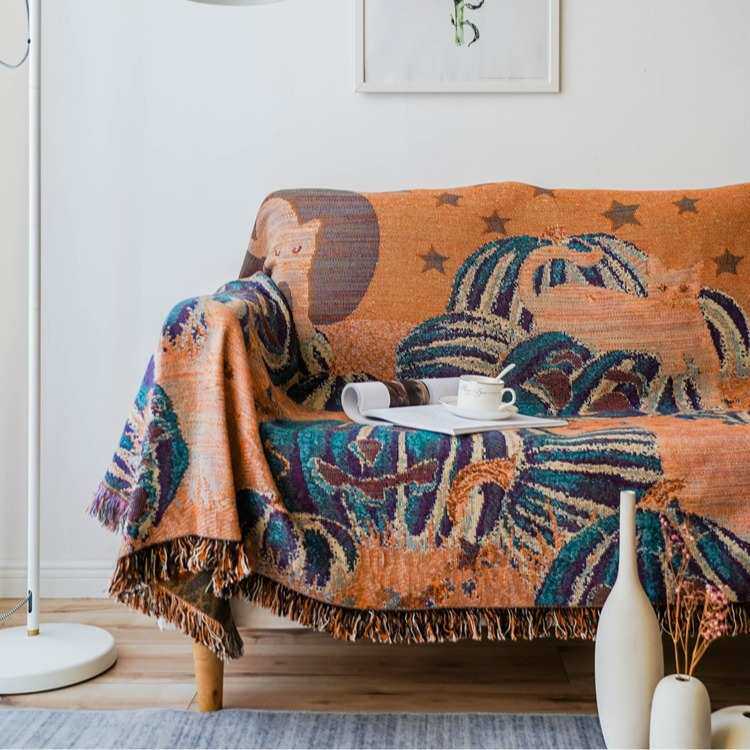 外贸万圣节款流苏线毯沙发巾单人全盖毯子野餐垫