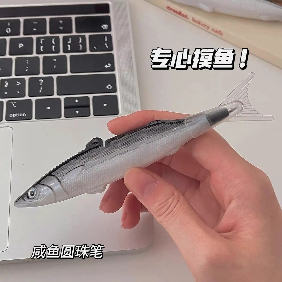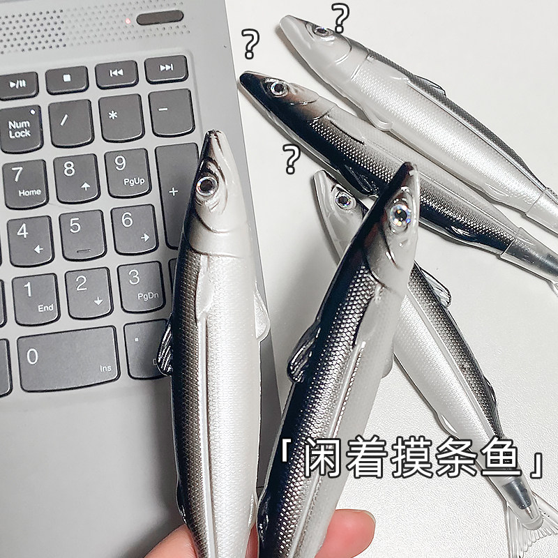 咸鱼笔卡通摸鱼笔创意仿真圆珠笔个性恶搞怪解压笔可爱沙雕奇葩文具用品高颜值趣味签字笔鱼造型笔鱼形仿真笔